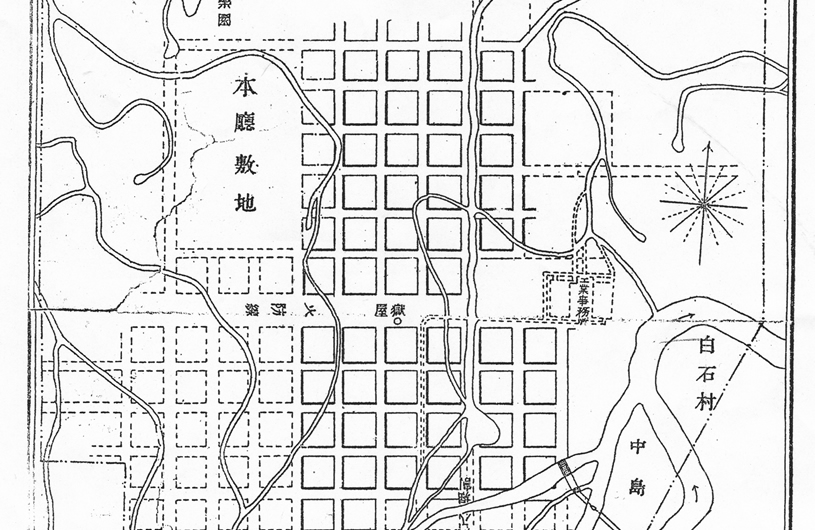 "Diagram of Sapporo City in the 4th and 5th years of the Meiji period" 1872, courtesy of the Sapporo City Archives (excerpt)