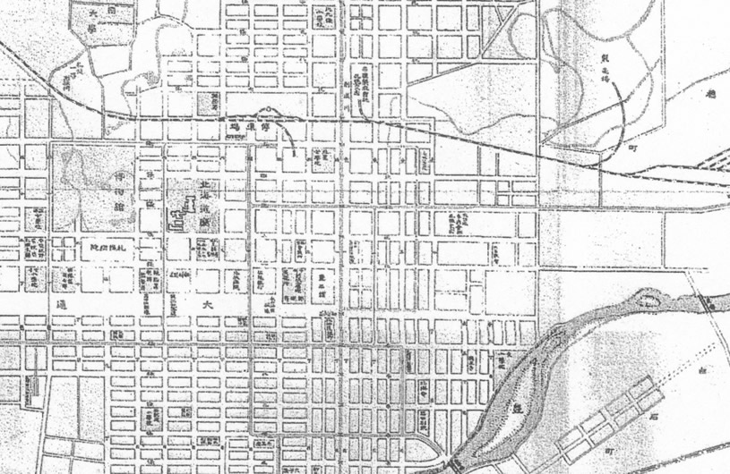 The "Sapporo Grand Map" edited in 1918 by the Sapporo Ward Office (Fukido), excerpt. Courtesy of the Sapporo City Archives
