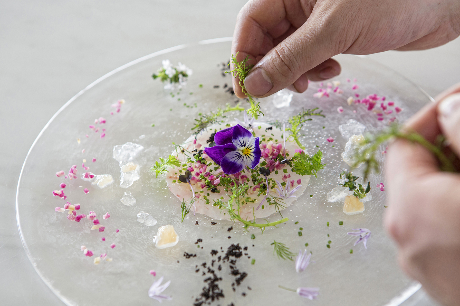 "Because the ingredients are good, I try not to alter them too much. While I was frequently cooking with ingredients that lacked flavor and body in Tokyo, in Kamikawa I am able to have fun cooking dishes that make good use of the ingredients by combining them in unexpected ways."