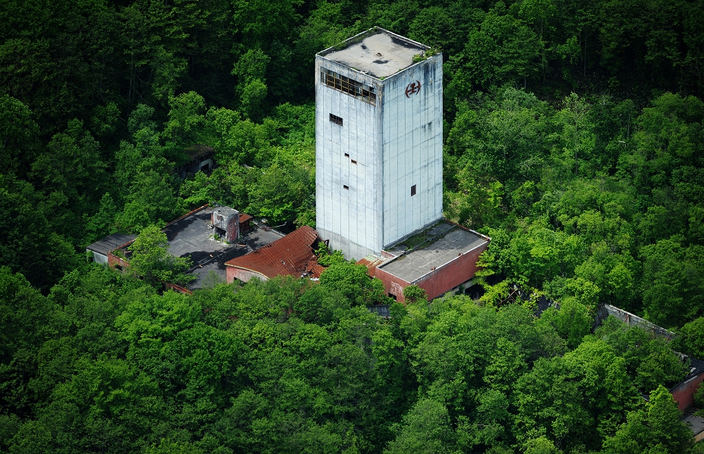 A 2009 aerial photo of the Haboro Main Haulage Shaft. I was impressed by the form of the chalk-white haulage shaft towering amid the verdant forest.