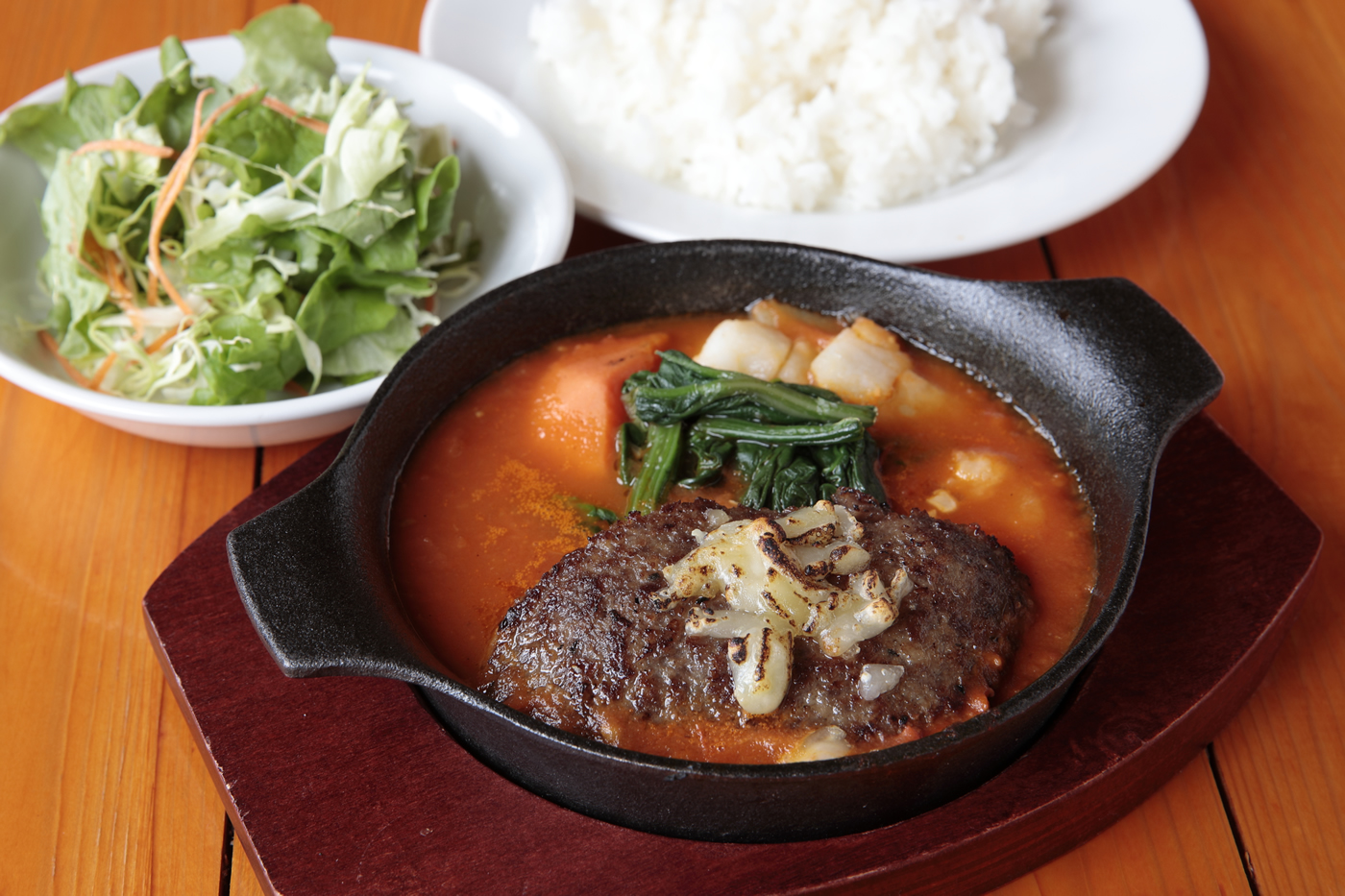 When asked about Kurobeko’s “Nispa’s Lover’s Lunch,” Yamaguchi explains “for several years, the popular Hamburg steak has been the main dish; in summer, it is served with freshly grilled tomatoes and sliced tomatoes; in winter, it’s offered in an original tomato-sauce stew.” The photo at the top of the article is of the 2019 winter version; the tart taste of the tomato sauce complements the hamburger steak, perfectly.