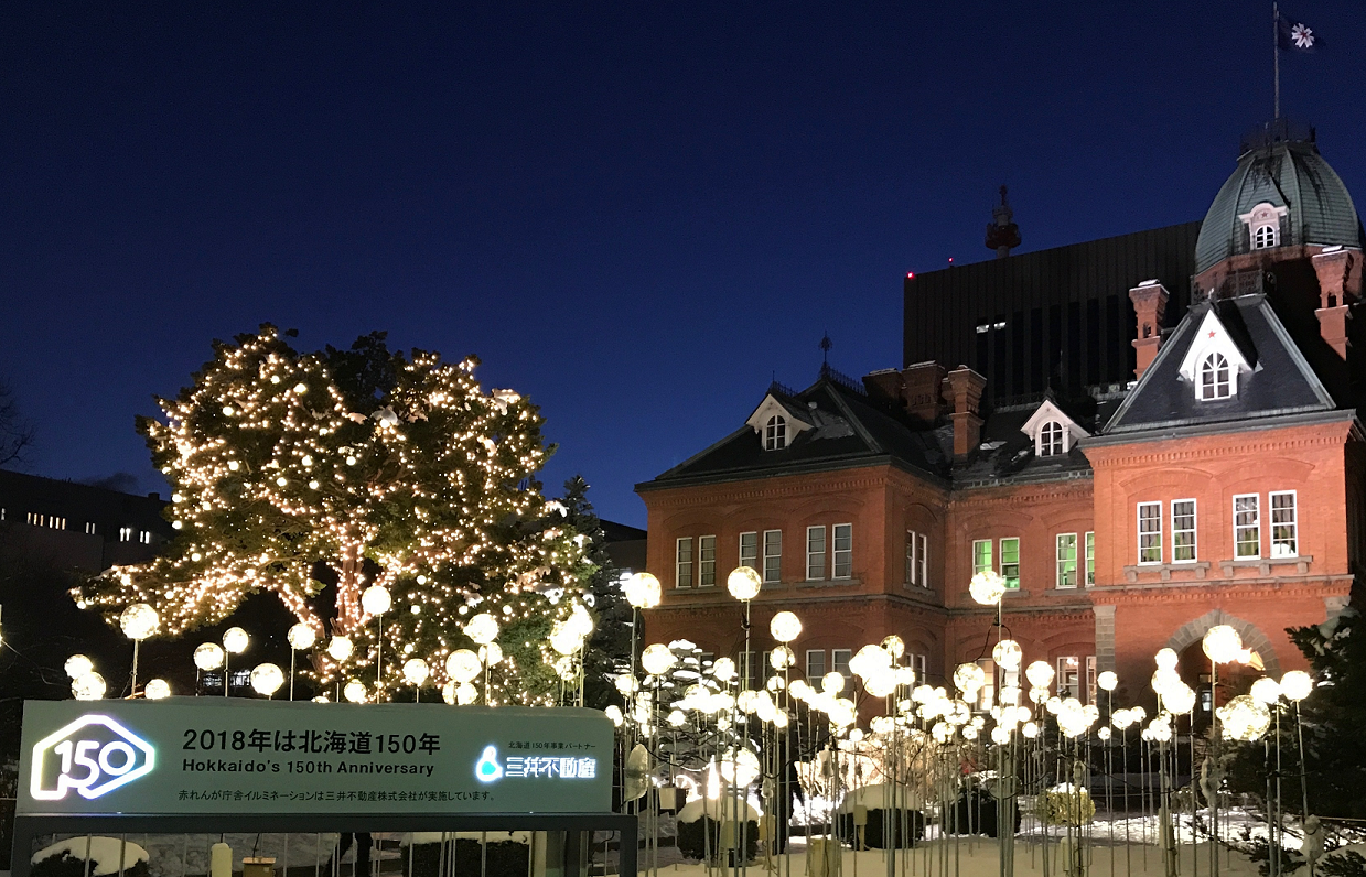 Hokkaido’s 150th Anniversary Project is a project that aims to convey the appeal of Hokkaido’s history and culture throughout the region and beyond, as part of the 2018 celebrations to mark the 150th year since “Hokkaido” was named. As a partner in this project, Mitsui Fudosan Co., Ltd. will stage the “Mitsui Fudosan × Akarenga Illuminations” in the grounds of the Former Hokkaido Government Office Building (Akarenga) from Friday, November 24, 2017 to Wednesday, March 14, 2018.