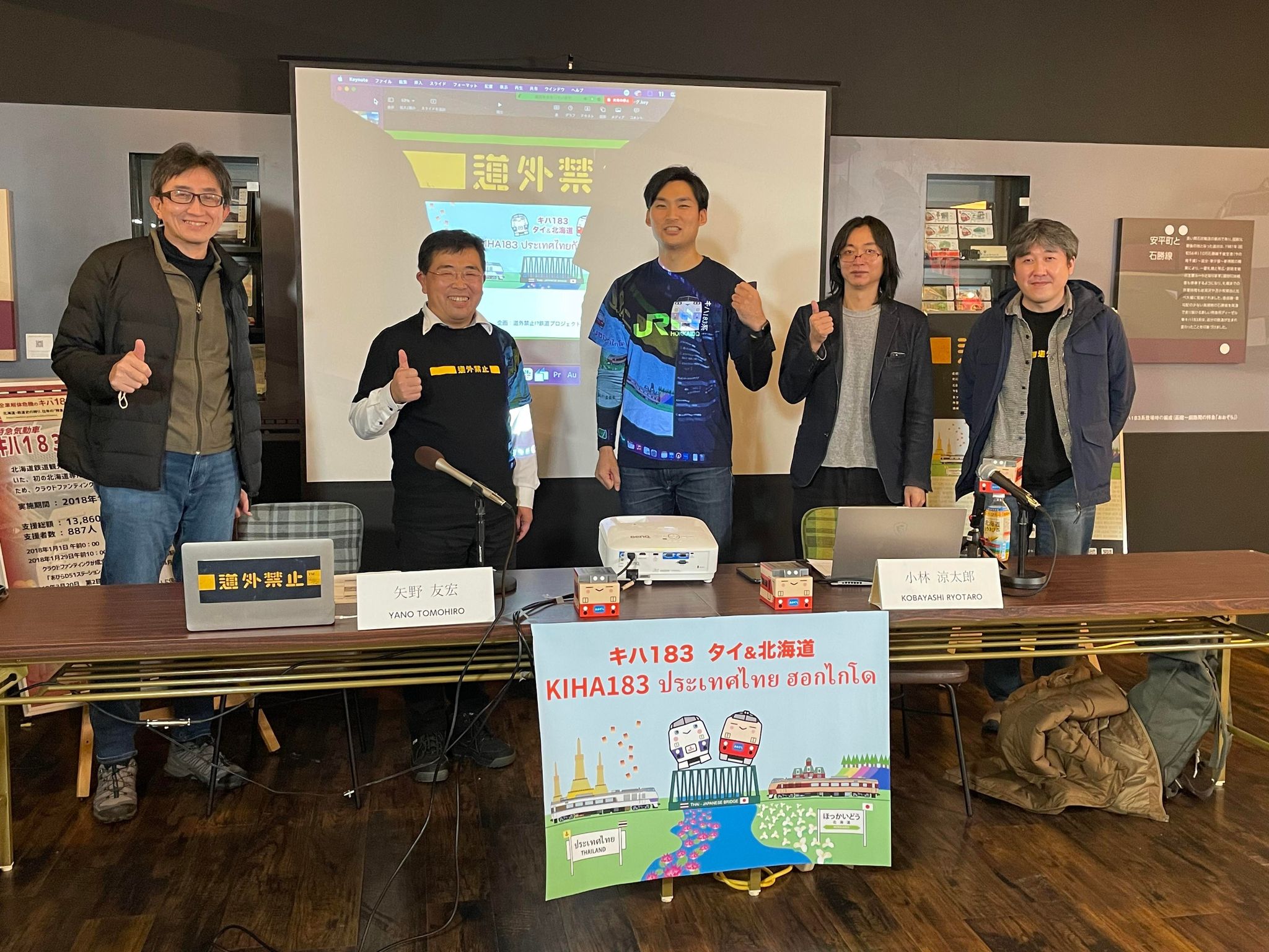 もう一つの企画は、日本とタイのキハ183系車両の保存と復活を称えるオンライン交流会(略称「タイ- 北海道のキハ183」)。こちらは矢野さんのキハ183への情熱と、これまた驚きの出会いによって実現した。そもそも矢野さんは2018年に北海道で現役を引退したキハ183の保存に力を注いできた一人で、クラウドファンディングなどの努力が実り、安平町に2両のキハ183が保存された。ほかの車両は2021年にタイ国鉄に譲渡され、整備後に観光列車として復活することが決まった。