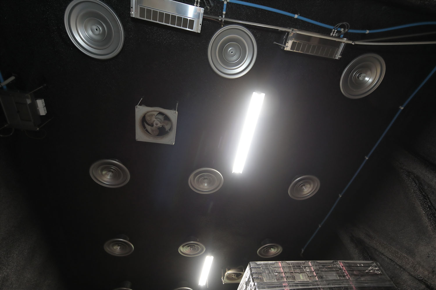施設の天井には蒸気を噴出する装置が設けられている。稼働時は内部の湿度を一気に高め、サツマイモのための“サウナ”状態を作り出す