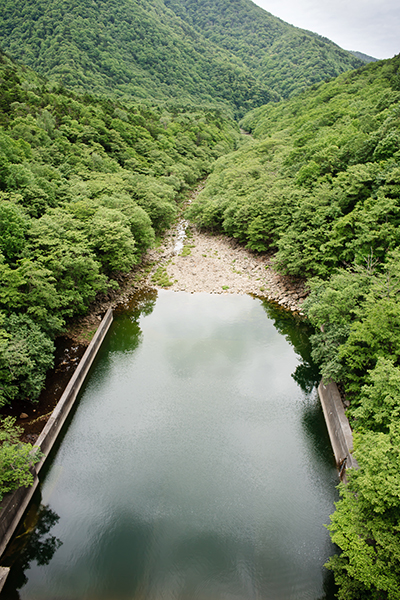 水は上流のダム(幌満湖)から送られている。ダムのある場所には、険しい渓谷から一転、なだらかな土地が広がっていた。ちょうどかんらん岩体の端にあたり、地質の変わり目だという。ダムから下流を見ると、川の流れが急に狭まっているのがわかる。ダムはちょうど渓谷の出発点に作られ、発電に必要な流れのパワーが自然に生み出される。つまり発電所にとって理想的な地形で、かんらん岩が作り上げた天然の発電システム、と言っていいだろう。
