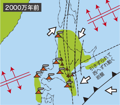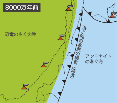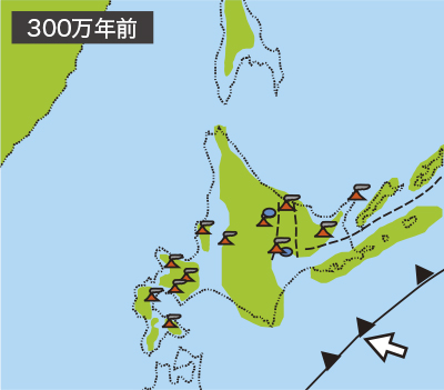 北海道の大地はほぼ現在の位置にやってきていた。激しくぶつかり合う大地の境目では、のちの日高山脈となる高い山地が隆起していく。