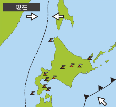 2万年前頃から地球はだんだんと暖かくなり、雪や氷がとけたことで海面は再び上昇し、北海道は今のような島となった。寒い時代に北海道に住み着いていた動物や植物は、高山などの涼しいところを見つけ、今はそこをすみかとしている。プレートのぶつかり合いは今も続き、それによって北海道では多くの火山が活動している。