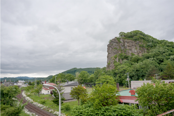地上から約78mにそびえる瞰望岩は、アイヌ語で「インカルシ」、「見はらしのよいところ」という意味で、遠軽の町名の由来ともなったシンボル的な存在。この巨大な岩石は、水中で噴出した溶岩が壊れてバラバラになったあと、火山灰と一緒に堆積して固まったもの。「太陽の丘えんがる公園」側から、頂上へ登ることも可能。