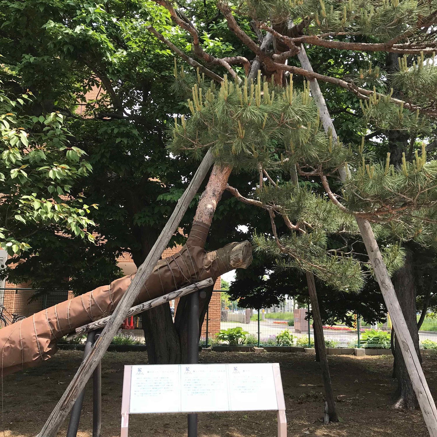 江南神社の境内にある「望郷の松」。内地をしのぶ縁(よすが)として、1894年に屯田兵に配られたアカマツ