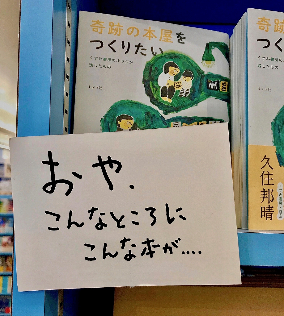 これはくすみ書房の元社員である伊藤さんが、『奇跡の本屋を〜』(ミシマ社)発売のPRを兼ねて、かつてのくすみ書房の世界観を再現しようとしたもの。書肆吉成でのトークに刺激を受けて、売り場担当の兼平純子さんに企画を提案したところ、店長を含めた賛同をすぐ得られた。