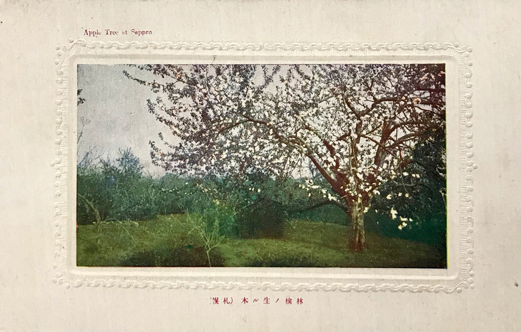 大正前期に作られていた、札幌のリンゴ園の絵はがき。かつてリンゴの開花は、道都に春を告げる風物詩だった(札幌市公文書館所蔵)