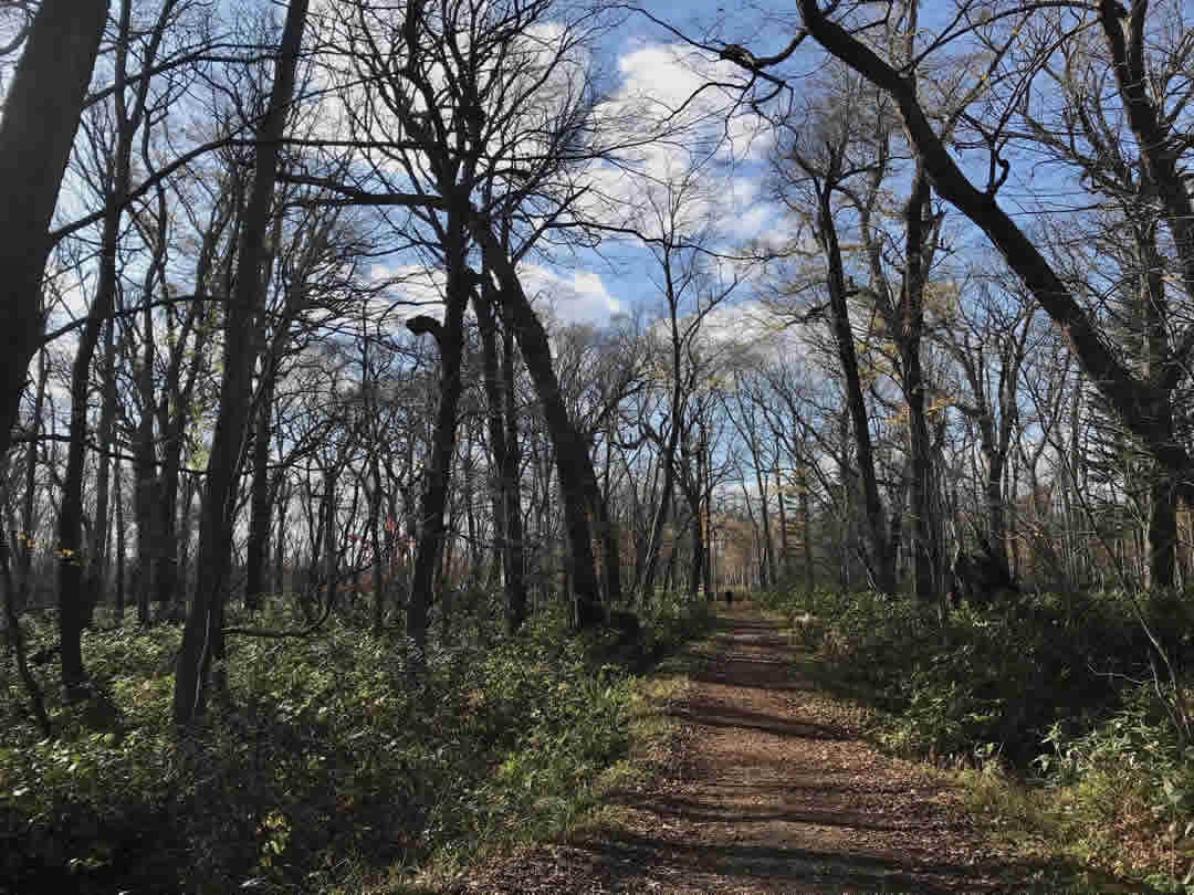 晩秋の野幌自然公園を大沢口から入る。明治・大正期に道央の開拓が進む中で残された、貴重な森が広がる