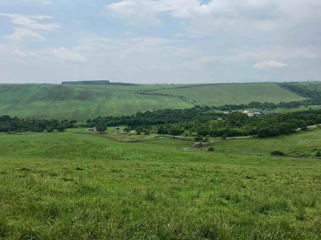 中標津町開陽台から見渡す、道東らしい大牧場の風景。この大地の前史に興味は尽きない