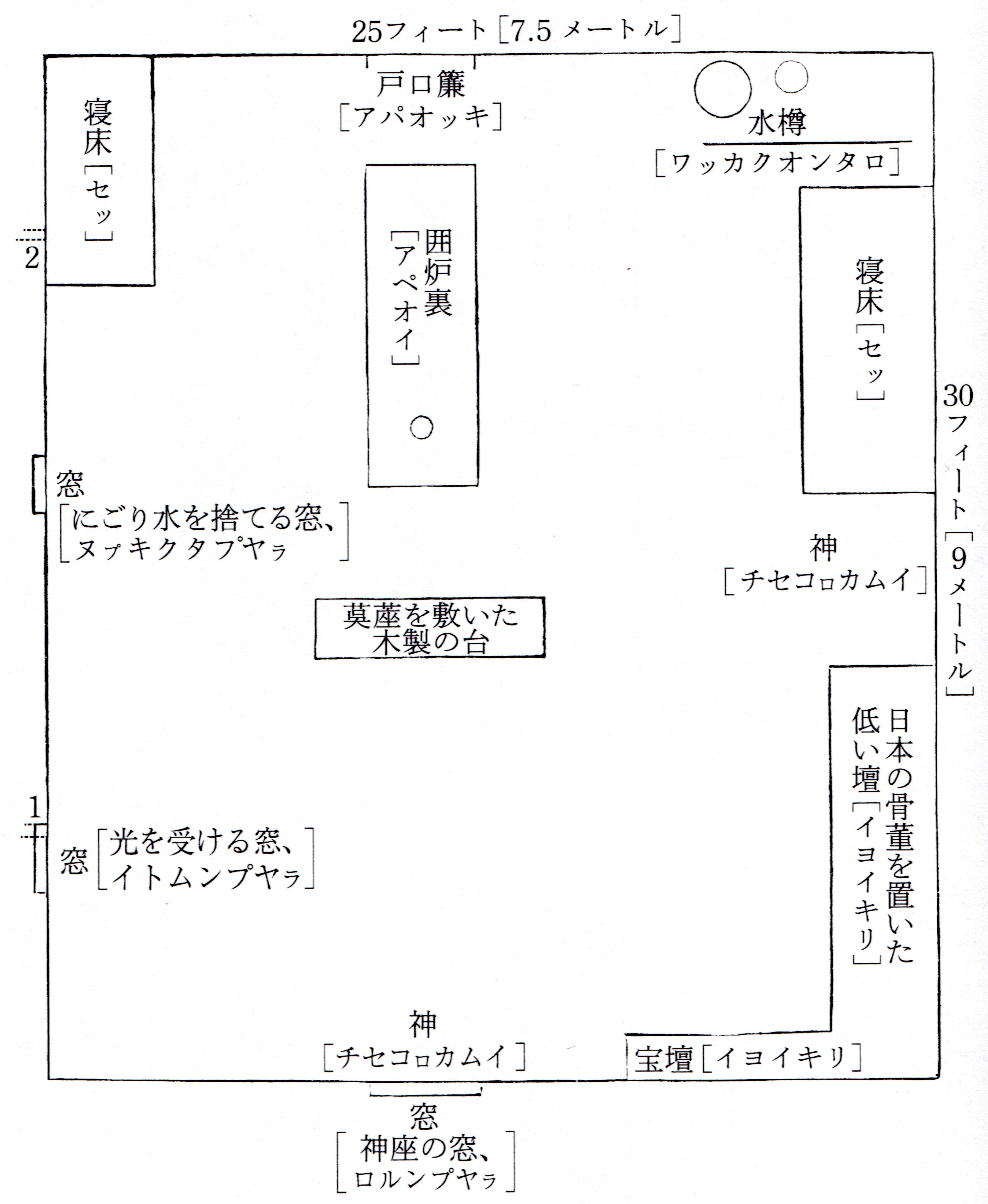 コタンの長(おさ)ペンリの家の平面図 (Plan of Chief Penri's House)
