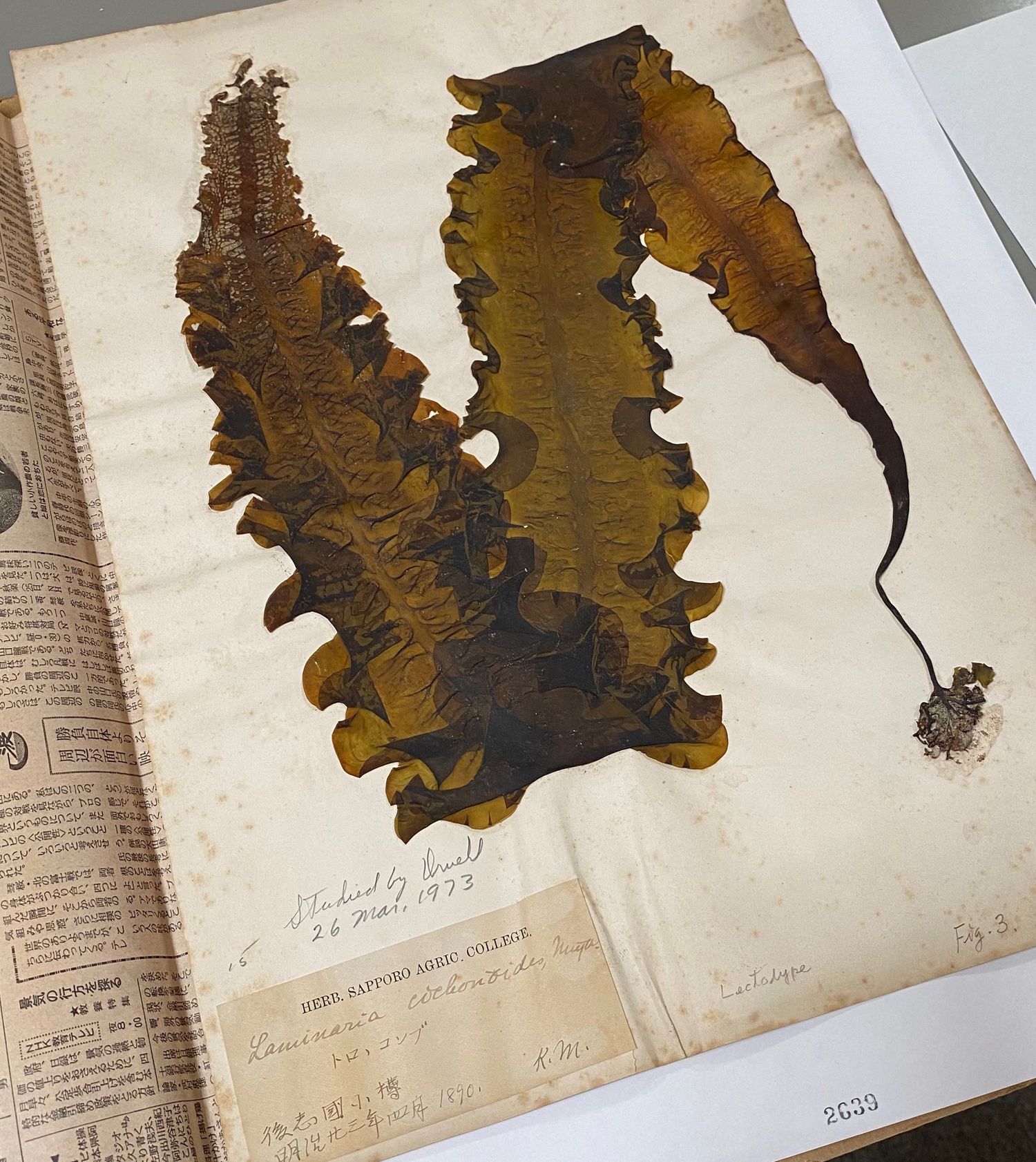 1890年に宮部金吾によって小樽で採集されたチヂミコンブ(調査当時は後志などではトロロコンブと呼ばれた)