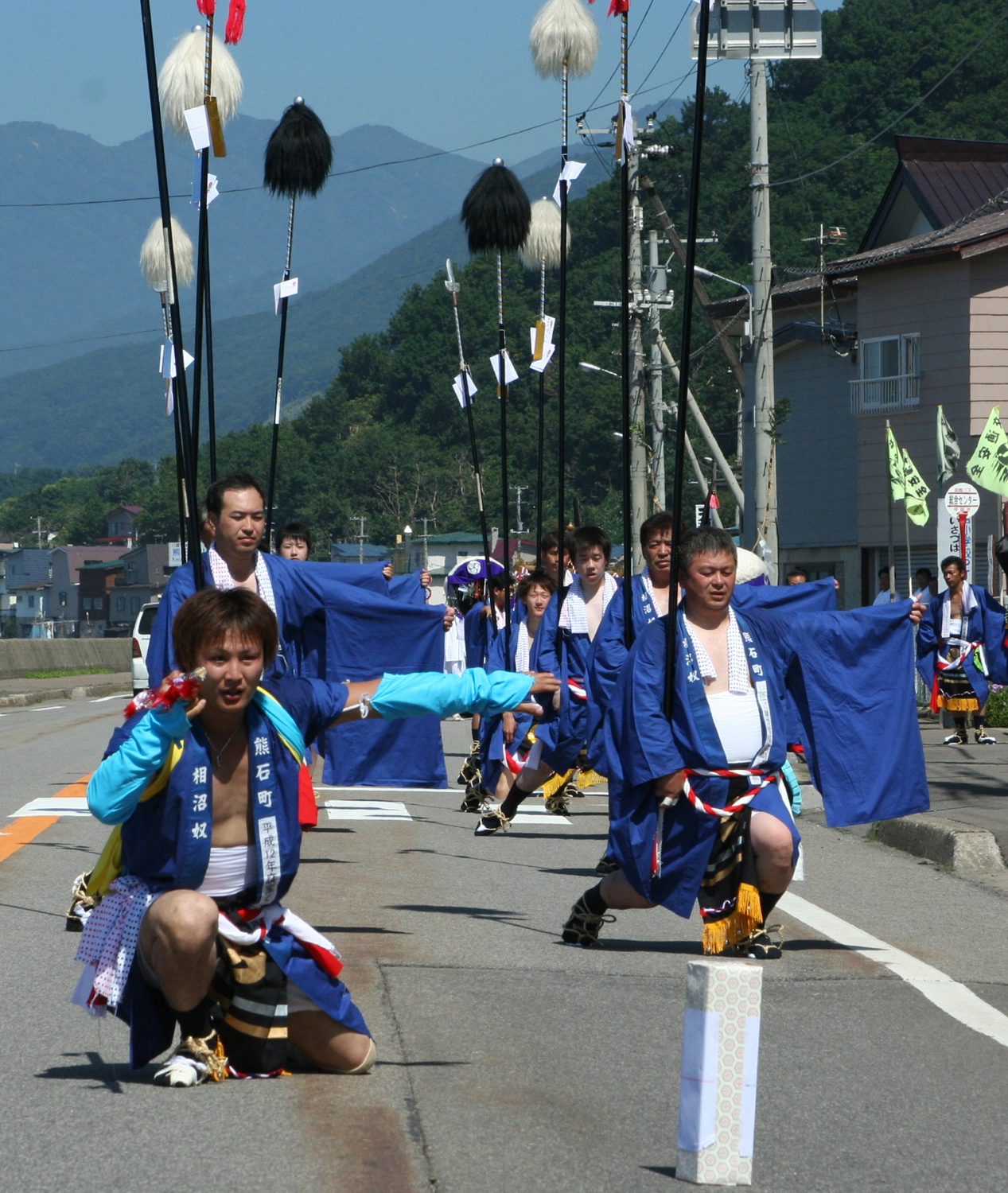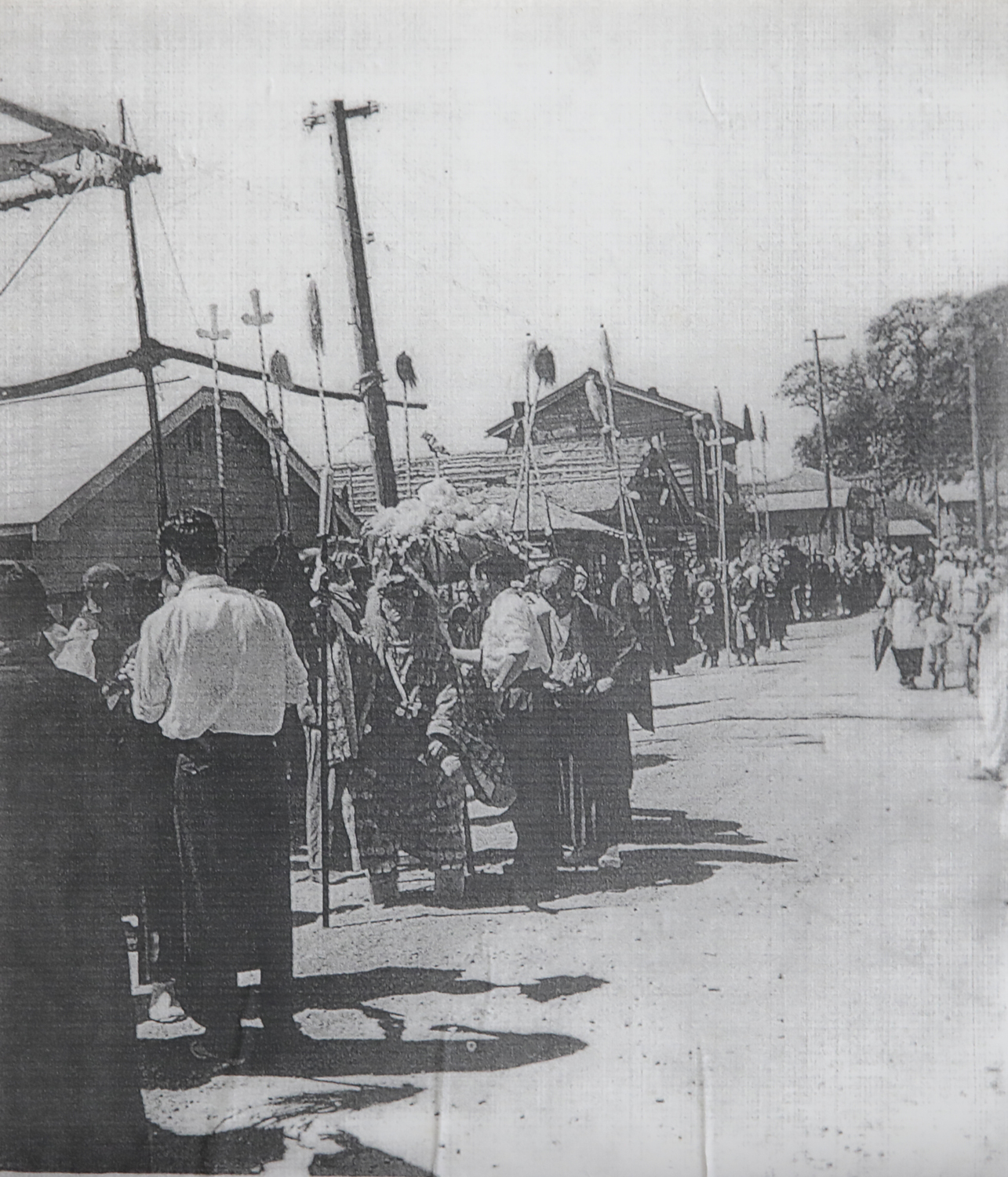 八雲町熊石(旧熊石町)の相沼八幡神社の大祭にて、おみこしや山車行列の先陣を切って進む相沼奴(熊石歴史記念館所蔵)