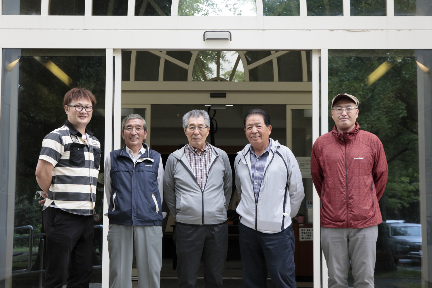 相沼奴保存会のみなさん。写真左から、笠取師匠の桂川裕樹さん、七つ道具師匠の山田悦雄(やまだ・えつお)さん、長柄師匠で総取締役の油谷州明(あぶらや・くにあき)さん、長柄師匠の田中一雄(たなか・かずお)さん、長柄担当の田中智貴さん