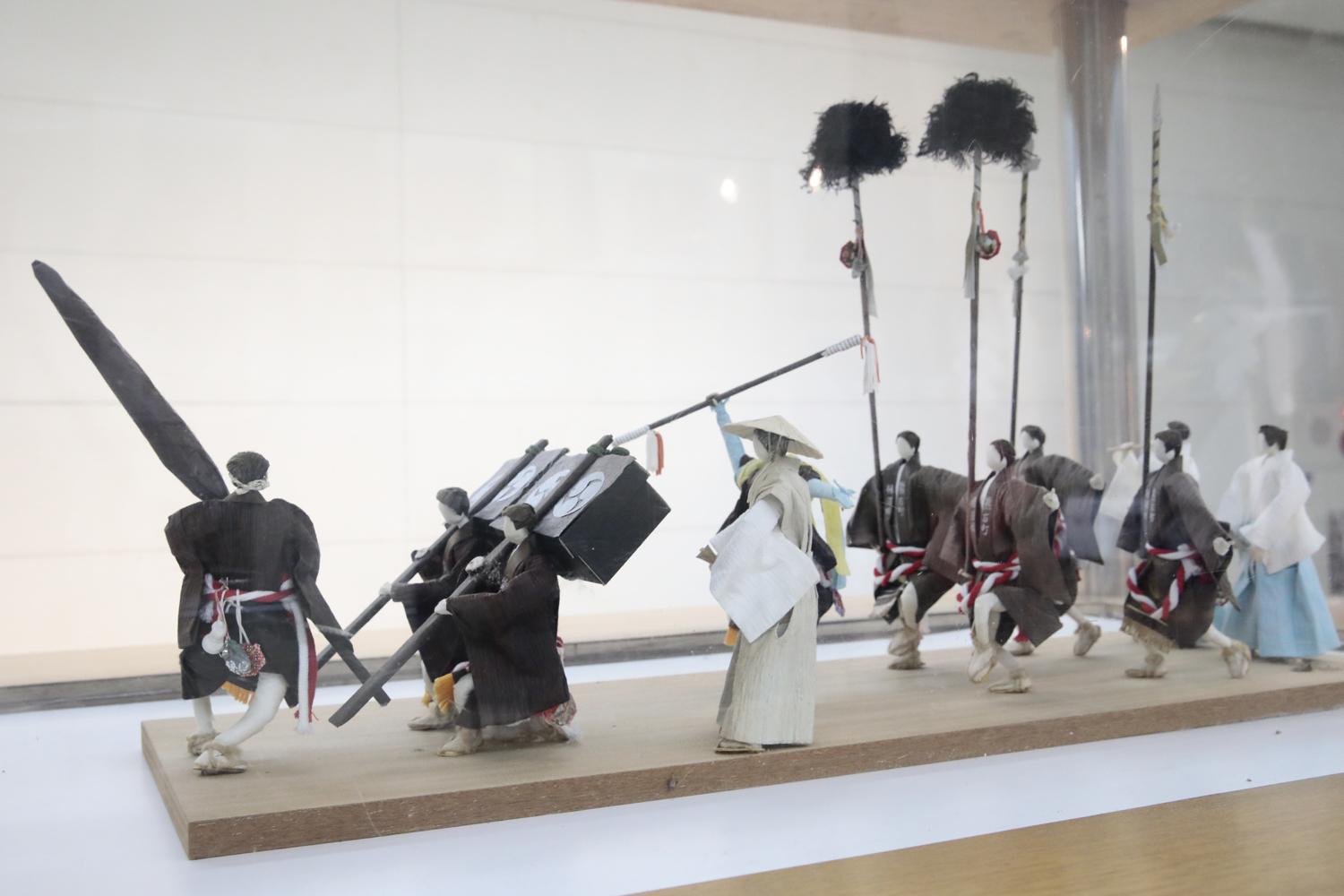 熊石歴史記念館に展示されている相沼奴の和紙人形。細部まで作り込まれ、行列の様子がよくわかる