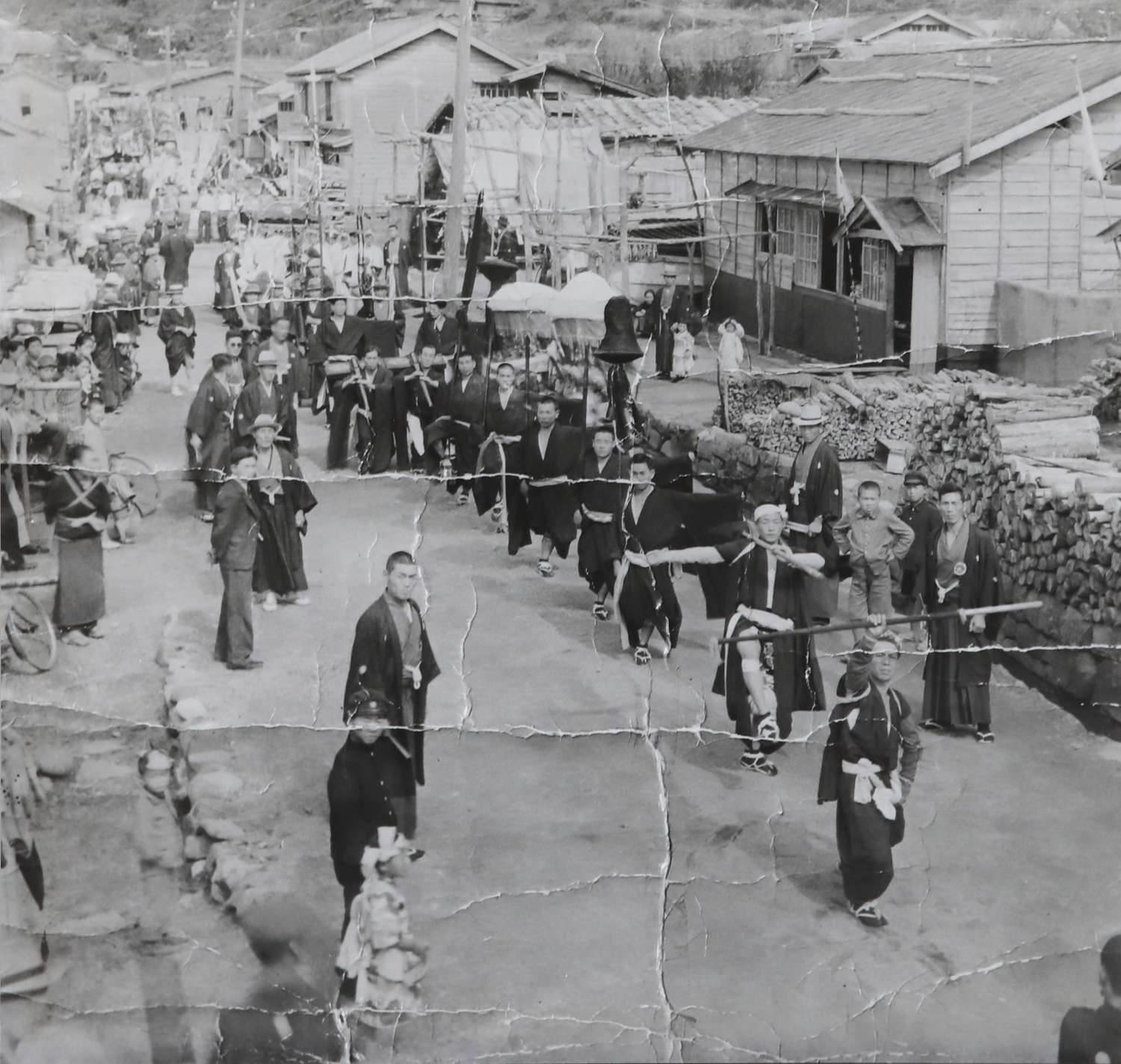 奴行列と見物の人々。行列が「こわる」と沿道の家や師匠からお酒が差し出される(熊石歴史記念館所蔵)