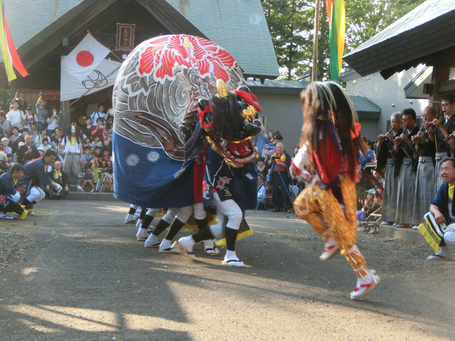 丘珠神社の秋季例祭で奉納される丘珠獅子舞(2018年9月15日/写真提供:丘珠まちづくりセンター)