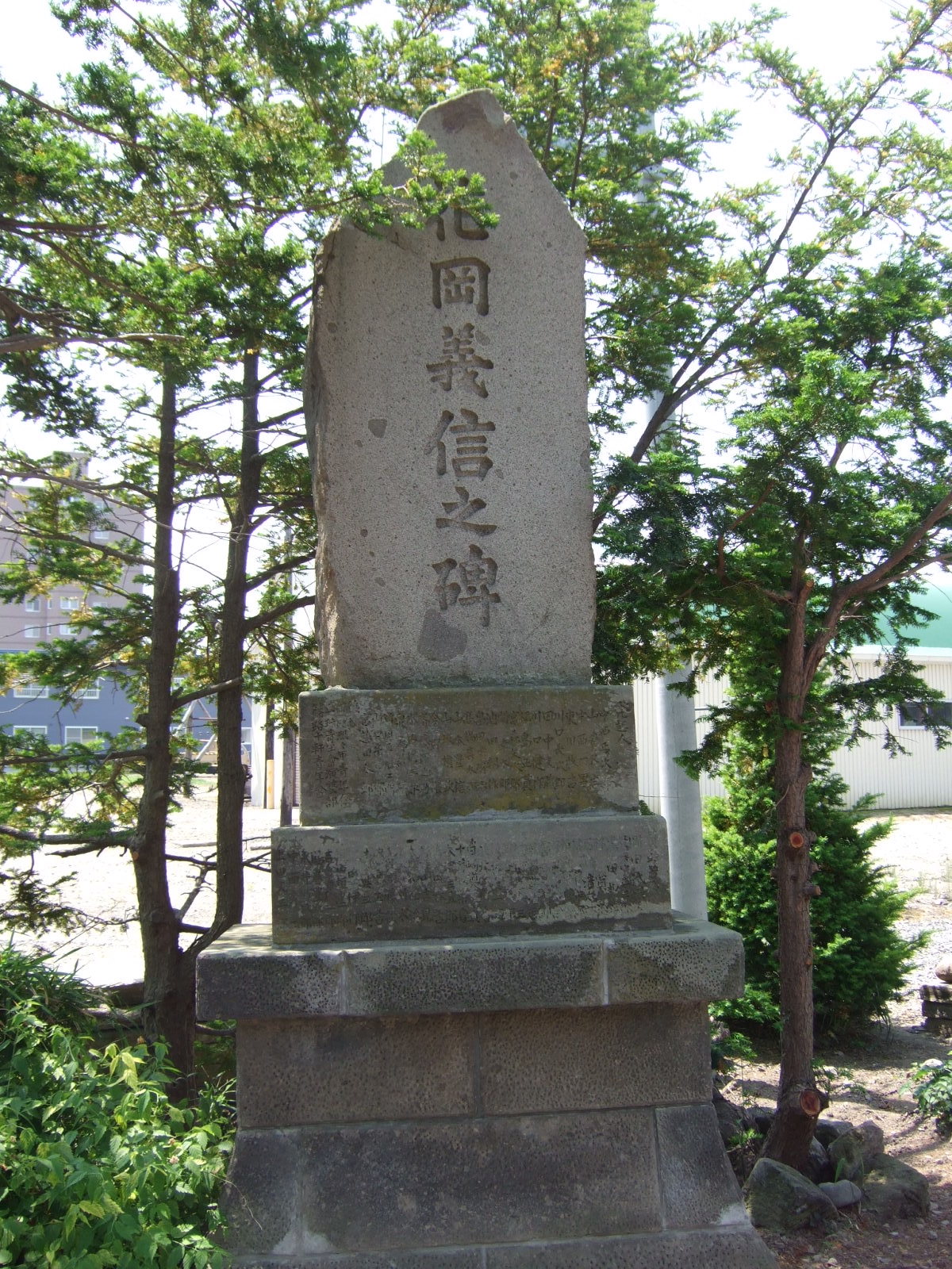 札幌市篠路の大沼家にある「花岡義信之碑」。当初は当時の烈々布神社近くに建立され、その後移築された