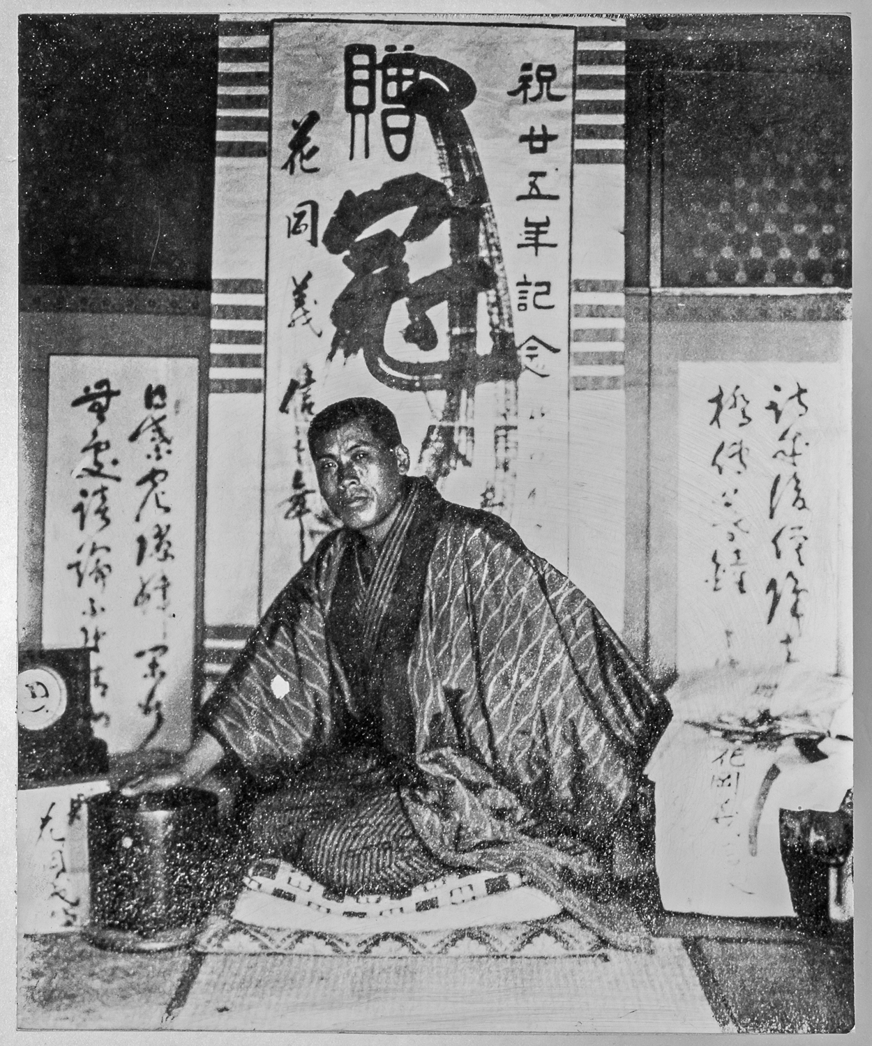 1926(昭和元)年、篠路歌舞伎25周年の祝いの席で大沼三四郎を撮影した記念写真