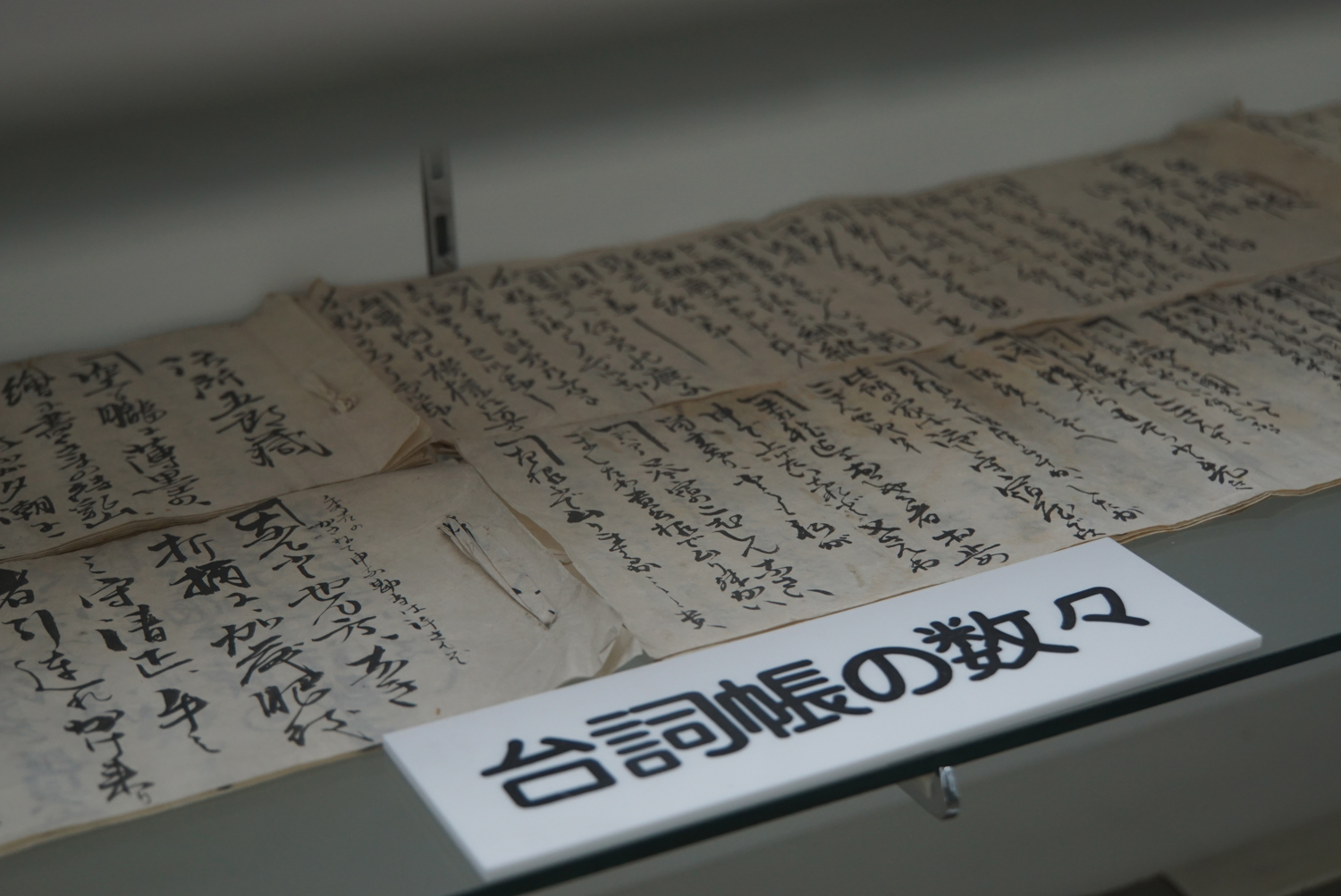 篠路コミュニティセンター1階に展示された手書きの台詞帳。各自が持ち歩いて、自分のセリフを覚えた(撮影:新目七恵)