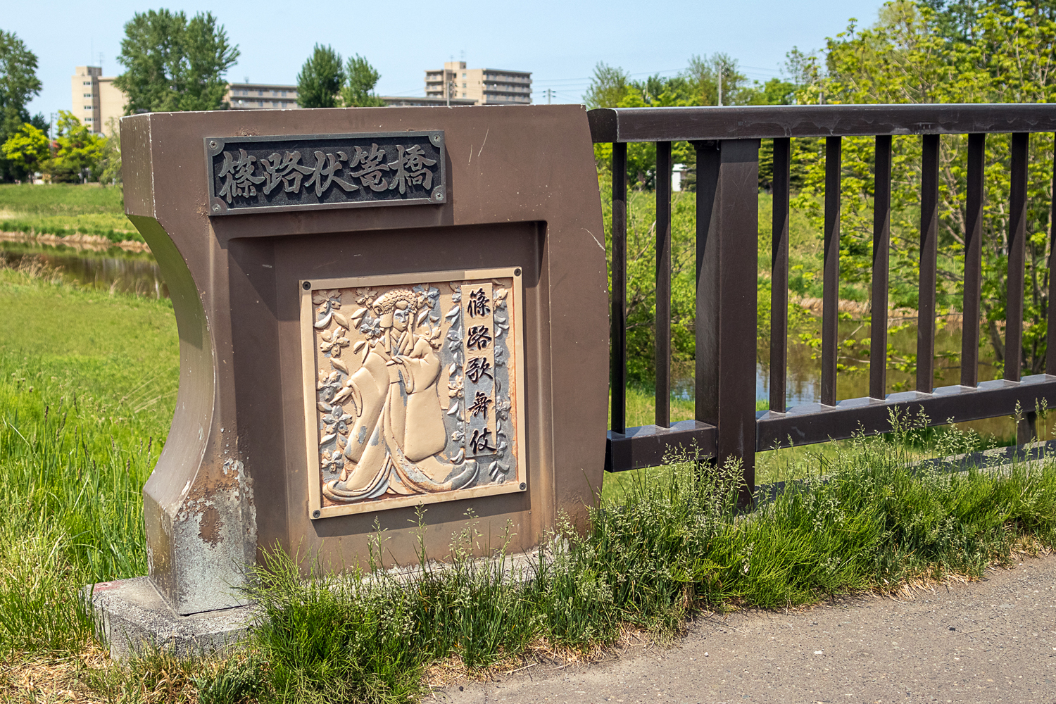 篠路伏篭橋に刻まれた篠路歌舞伎の歴史を伝えるレリーフ