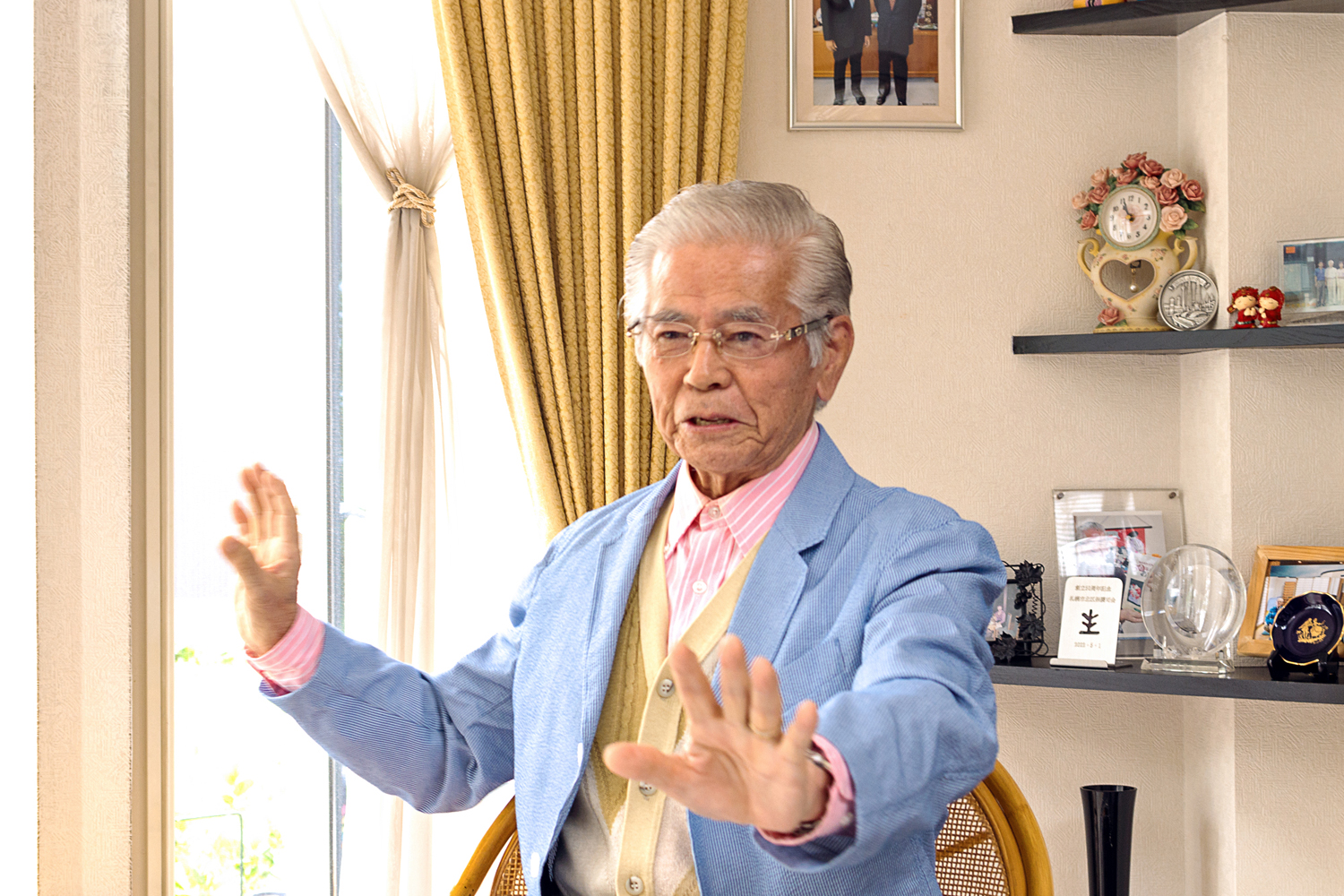 「最初は笑われましたが、そのうち拍手が起き、ぐっときました」と、モンゴルの大学生たちの前で歌舞伎のしぐさを披露した時を振り返る、篠路歌舞伎保存会の大髙会長