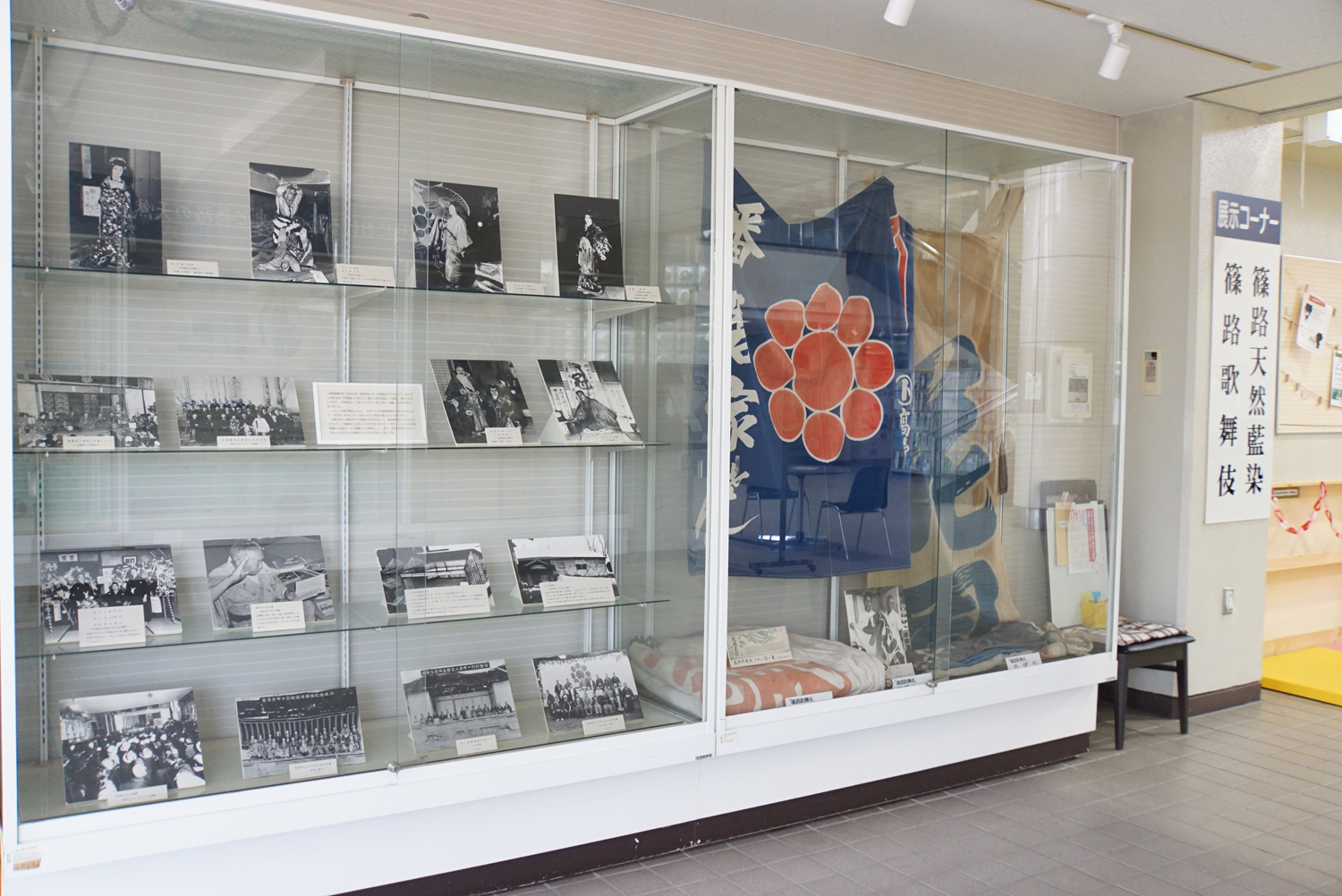 篠路コミュニティセンター1階ロビーにある篠路歌舞伎の展示コーナー(撮影:新目七恵)