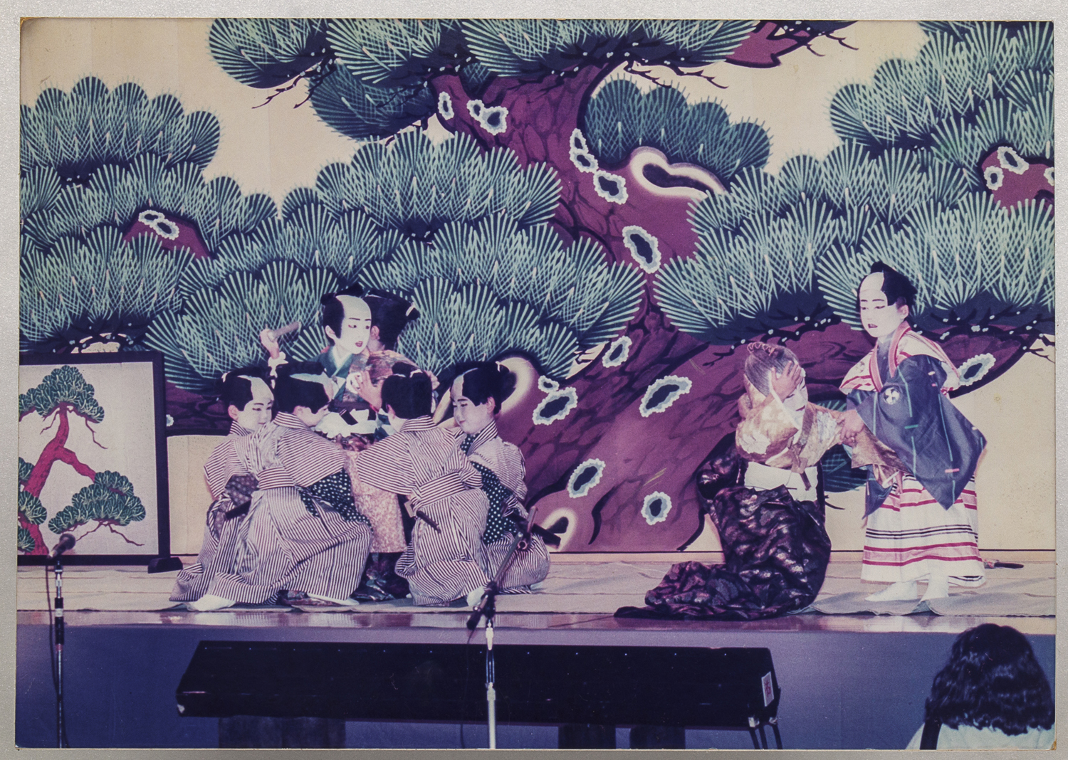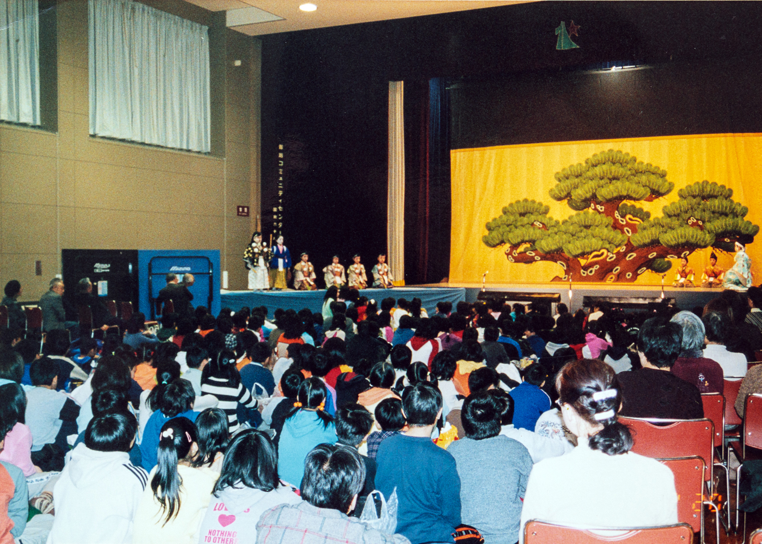 1985(昭和60)年10月、篠路コミュニティセンターの落成記念式典で、住民によって再現された「篠路歌舞伎」。51年ぶりのステージは、熱気と興奮のうちに幕を閉じ、大評判となった。