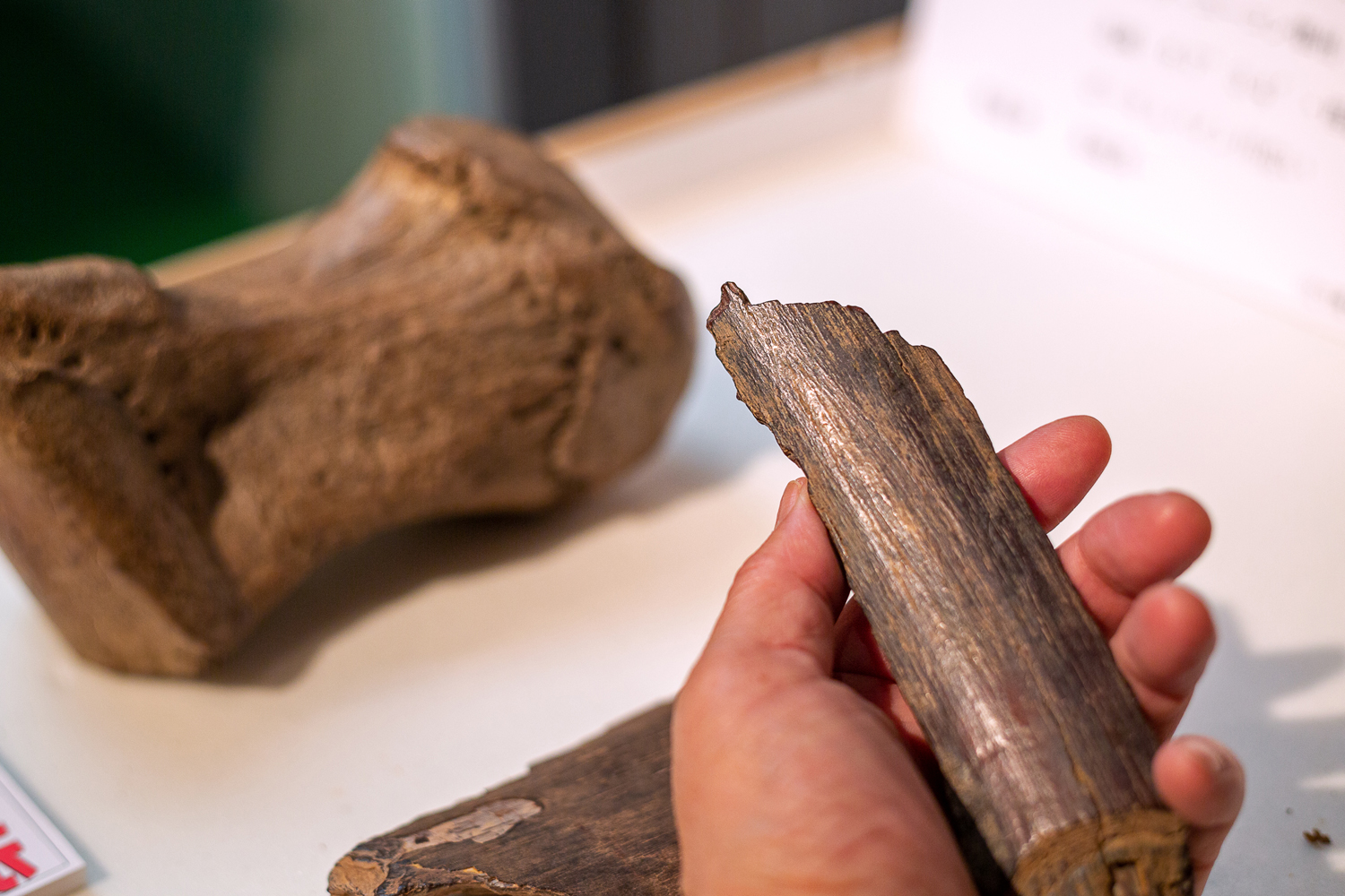 吉崎氏が収集したマンモスゾウの化石の実物資料。レプリカではなく実物をハンズオンできるのは貴重だ