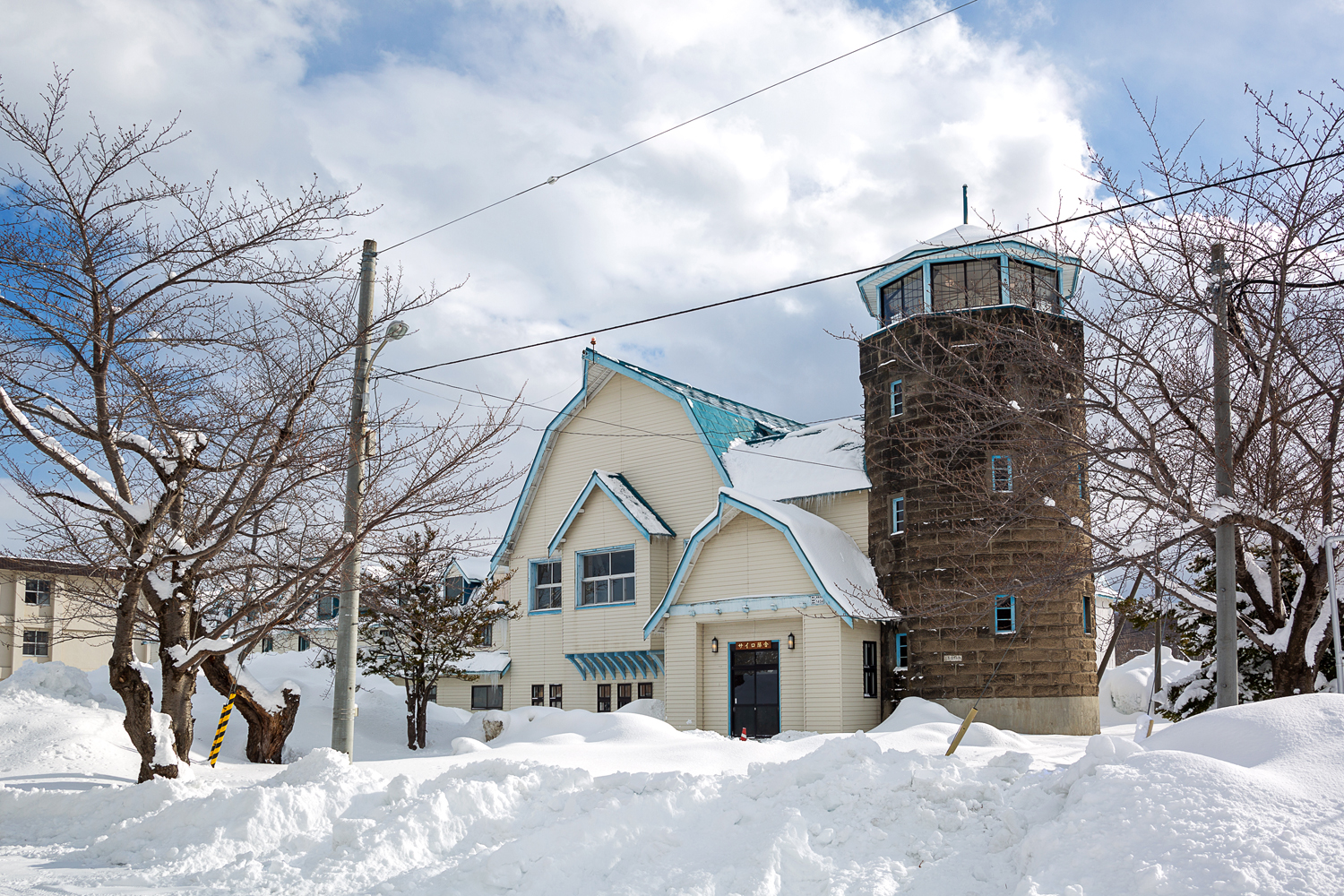 サイロ部分の札幌軟石と、隣接する元牛舎部分のマンサード屋根が特徴的な「サイロ隊舎」。真駒内には「エドウィン・ダン記念館」もあるが、道内に現存するサイロとしては最大級で、種畜場時代唯一の建物だとか