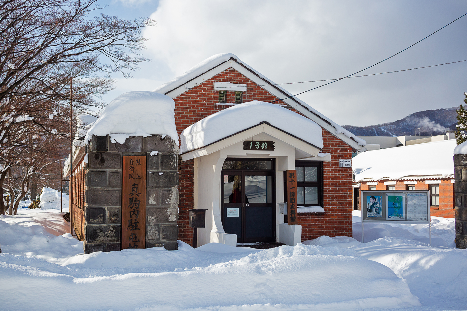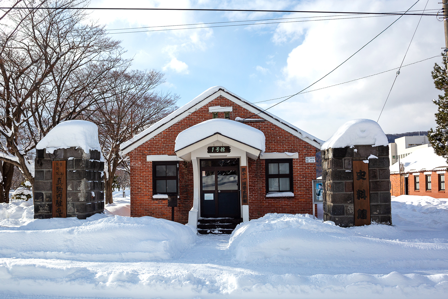 続いて移動した先には、3棟が建ち並ぶれんが造りの平屋群。「1号館」「2号館」「3号館」と名付けられた各施設では、それぞれ「陸上自衛隊」「屯田兵」「旧軍」のテーマで関連資料が展示されている。