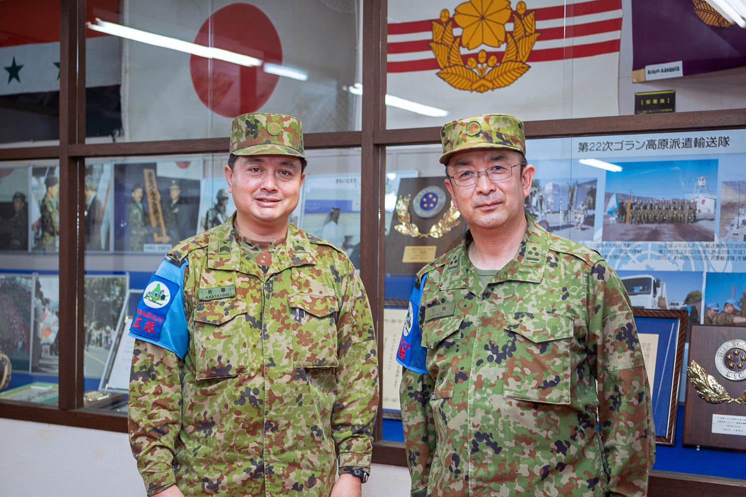 真駒内駐屯地司令職務室の加藤さん(右)と片寄さん。見学には広報担当者の同行が必要。今回は4施設で計約2時間とフルコースで案内してくれたが、希望時間に調整可能だとか