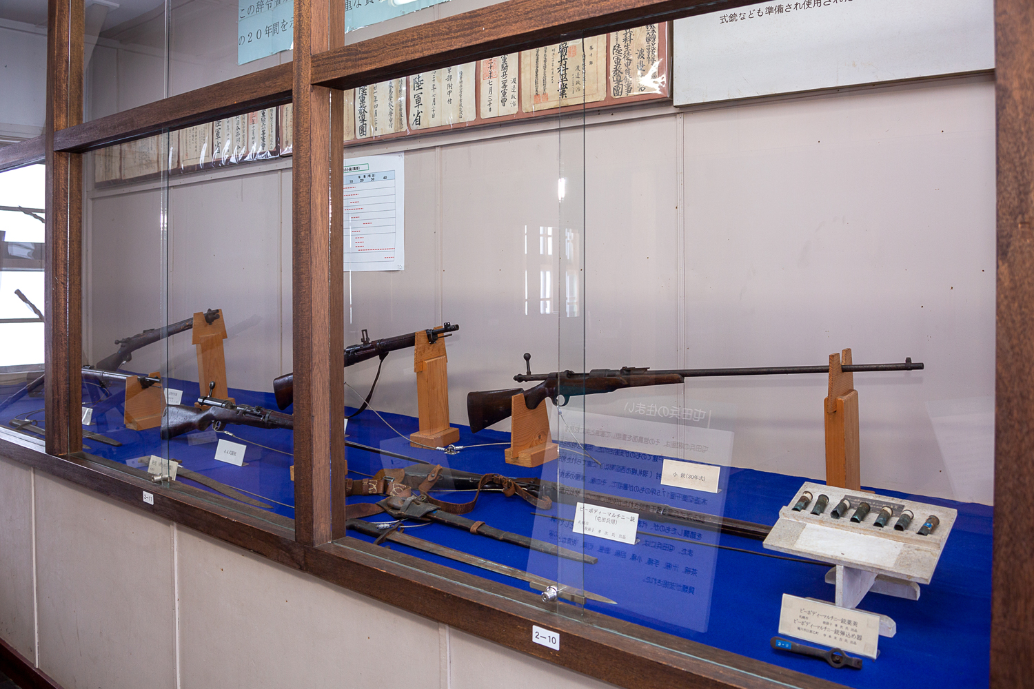 「ゴールデンカムイ」の登場人物が愛用したという村田銃の実物を見ることができる2号館の展示コーナー。ほかにも主人公が使った銃剣なども