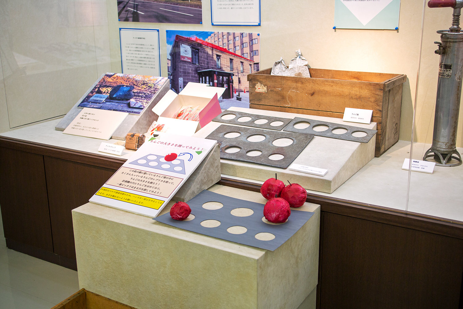 2つ目の産業テーマ「豊平りんごストーリー」は、かつて豊平区ではリンゴの栽培が盛んだったことから、リンゴ産業にまつわる道具や建築物についての展示を行った。果樹園で実際に使用していた器具や、現存するリンゴ倉庫のジオラマを作製し展示。産業班の班長・村上結菜(ゆうな)さんは、コロナ禍でハンズオン展示を活用できなかったことが少し残念だったという。
