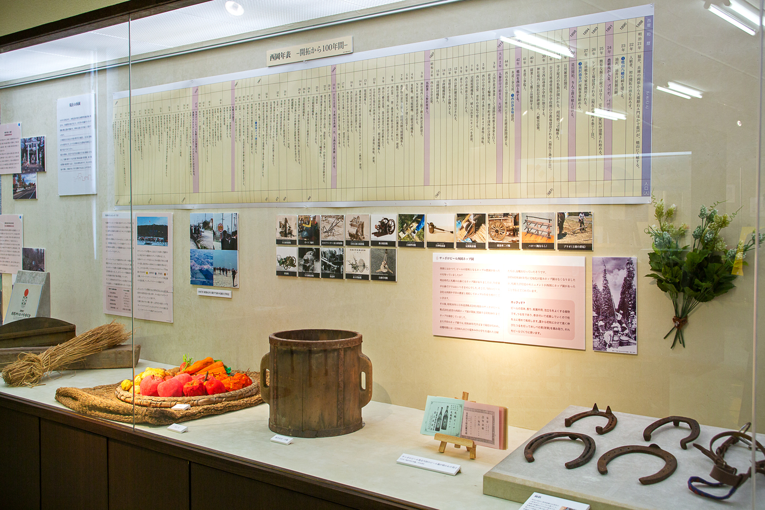 「西岡ものがたり」では、ジャガイモ畑やサッポロビール直営のホップ畑などが広がる農地から、高度経済成長期に新興住宅地へと変貌していく歴史を紹介