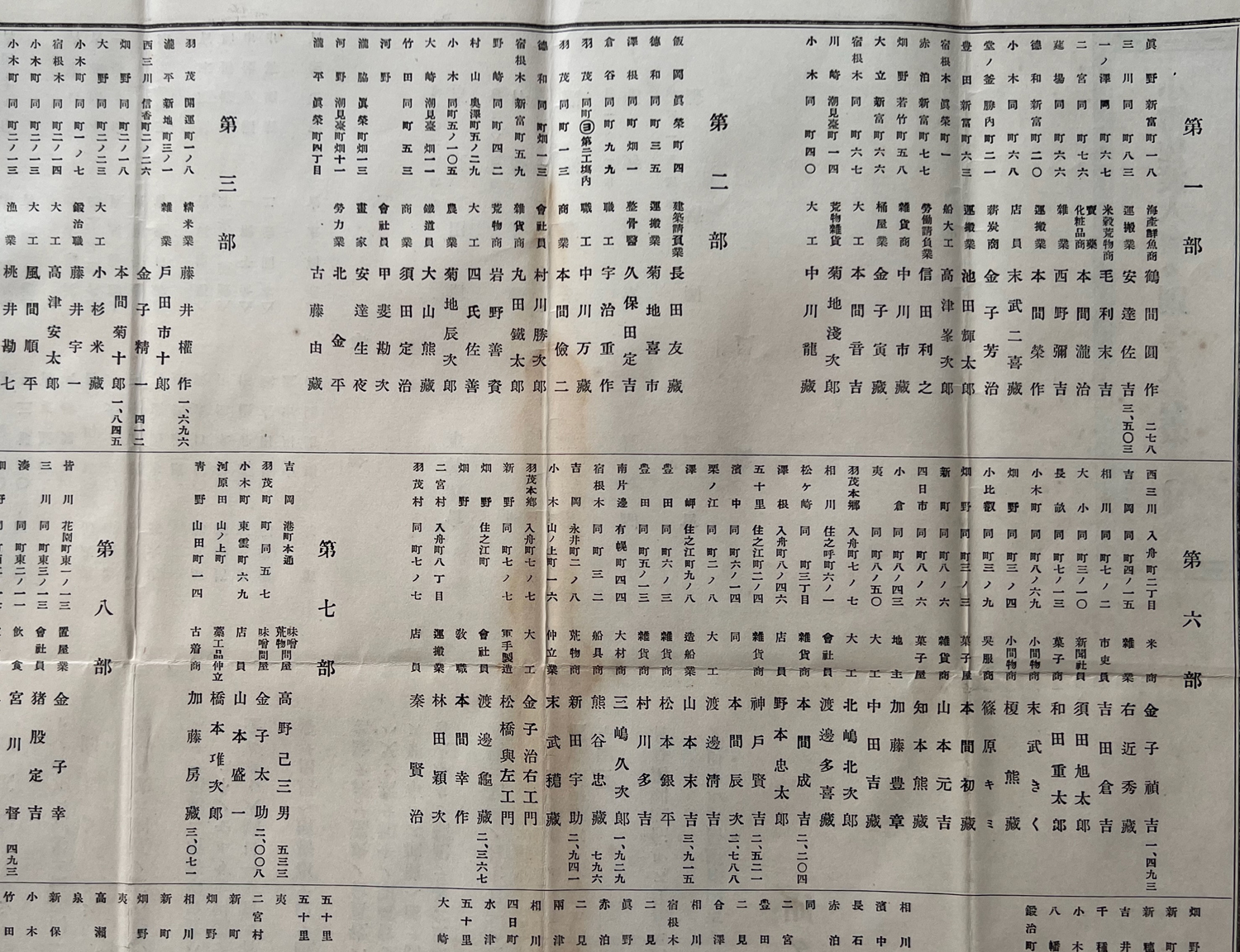 「小樽佐渡人会」名簿。この1931(昭和6)年版には、全14部に分かれて213名の会員がいる
