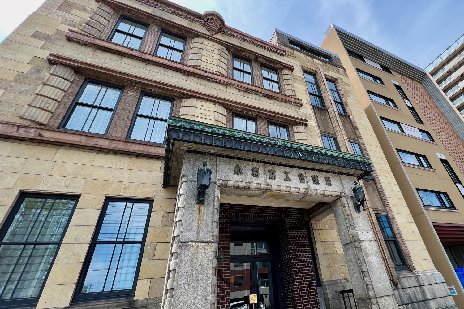 旧小樽商工会議所。この建物は、磯野進が会頭を務めたあとの時代、1933(昭和8)年竣工。昭和初期の鉄筋コンクリート造の建物として稀少