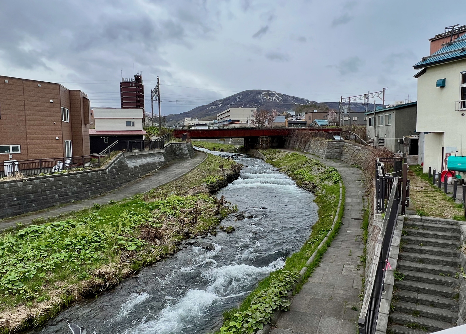 現在の勝納川下流域。函館本線の鉄橋が見える