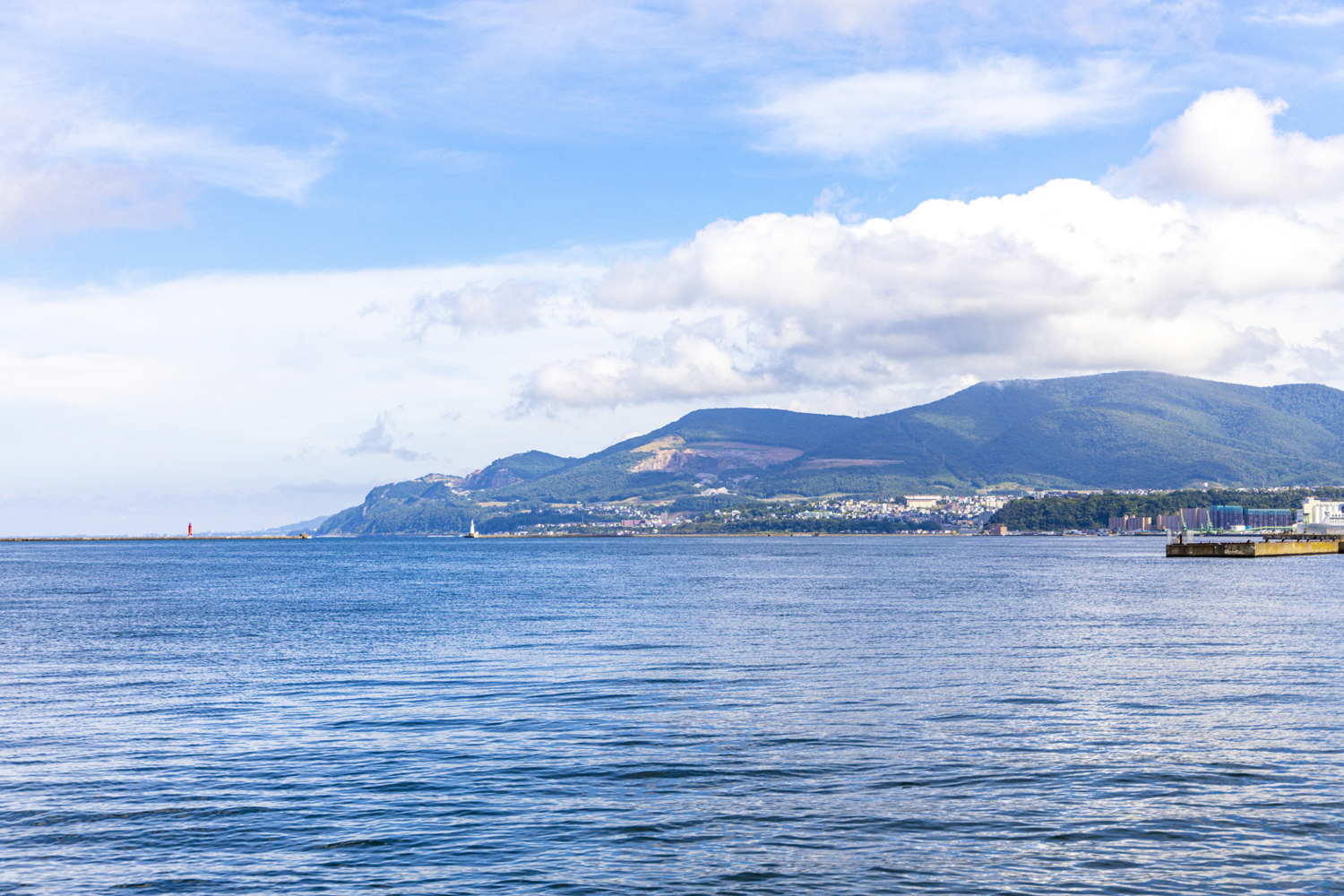 小樽港から東を望む。灯台が建つ南防波堤を抜け、石狩湾を北進すると増毛がある(写真:photoACより)