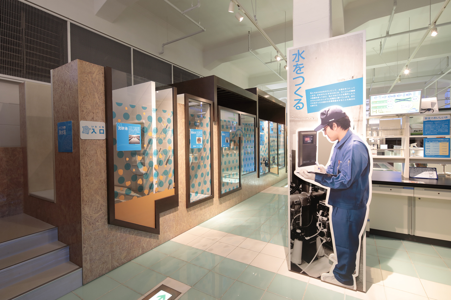 さらに進むと「アクアタウン」ゾーンだ。街まで届けられた水が、私たちの生活の中でどのように関わっているのか。日常で使う水の量をペットボトル換算で表現するなど、直感的に水を知る工夫が施されている。