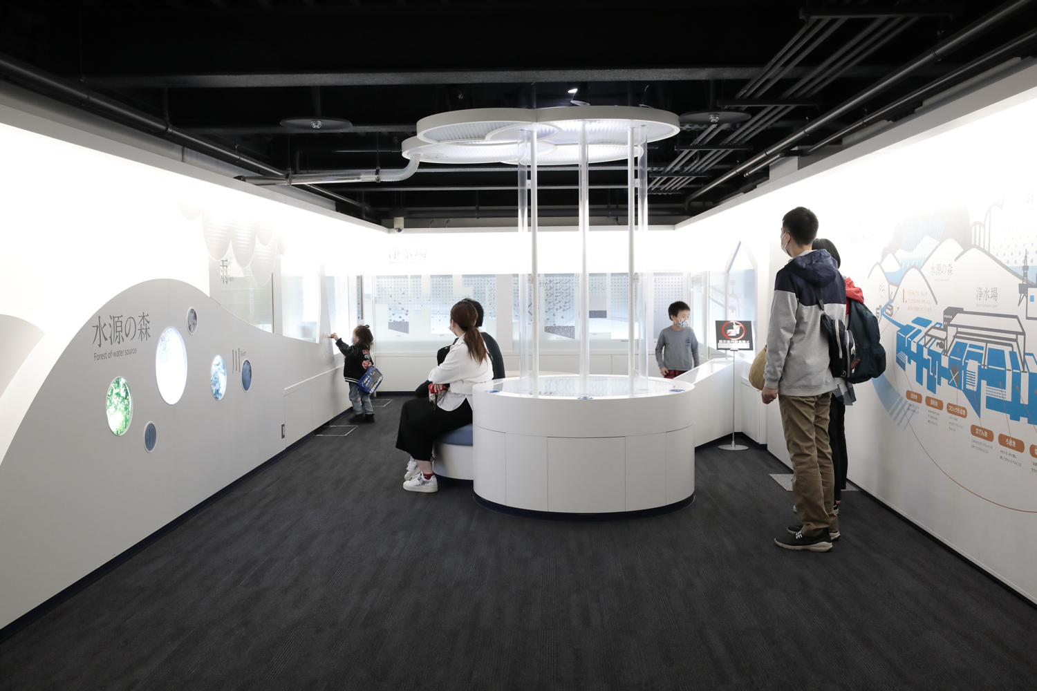 そしてミュージアムのラスト、「水道プレイスタジオ」ゾーンへ。これまで見てきた水の旅をぎゅっと凝縮し、水の循環の全体像を一望できる展示になっている。