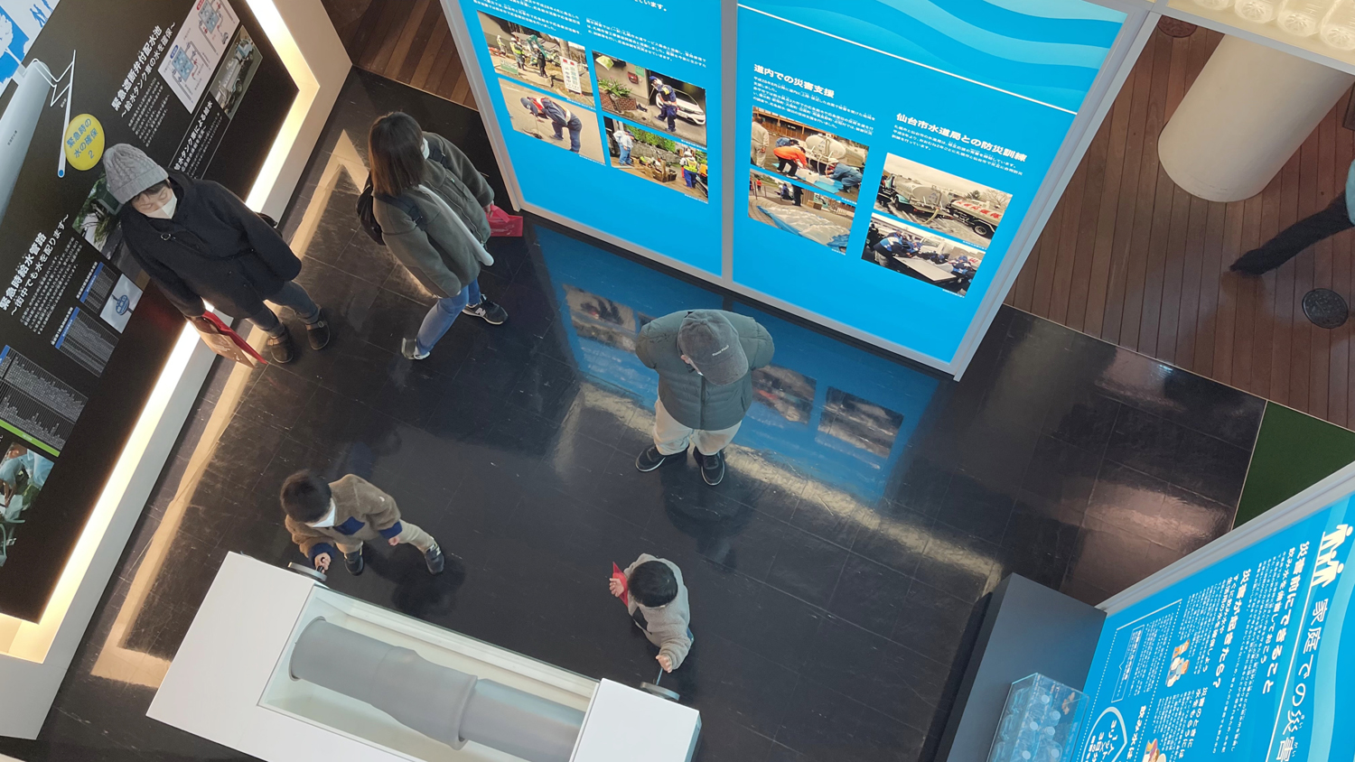 アクアタウンは街と暮らしと水の関わりを伝える。世界の水事情、災害対策などのコーナーも