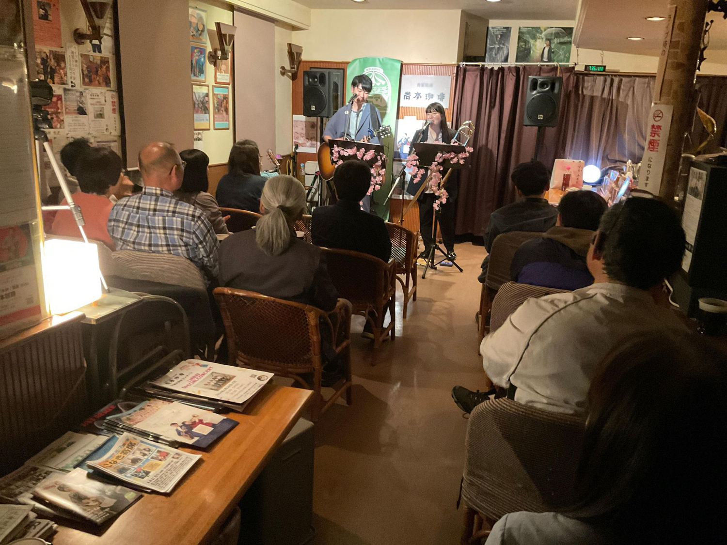ライブの風景。最近はウクレレや民族楽器の演奏会も増えている。音楽以外では朗読会も開催している(提供:岩本珈琲)