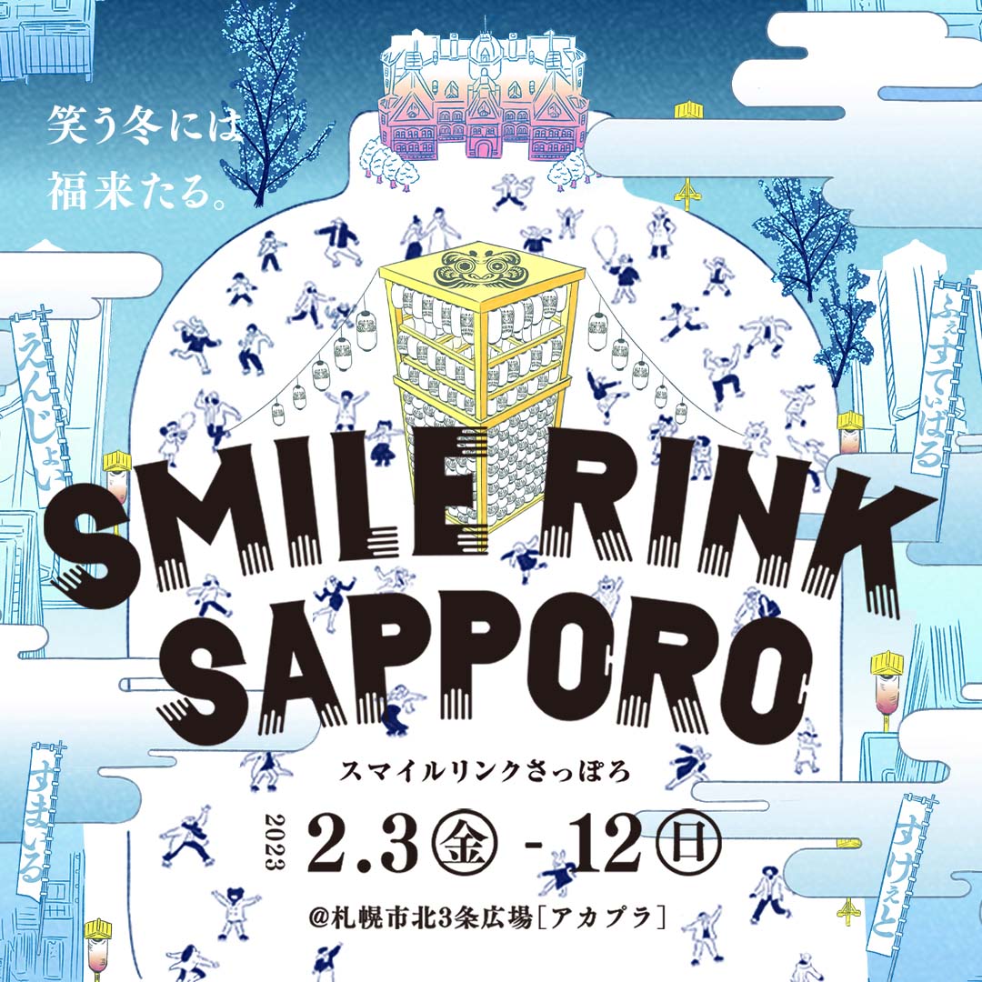 しかし、ウインタースポーツ空間がある日突然、都心にできたならば―そんな非日常のスケートリンクが、間もなく札幌都心に出現します。北3条広場(アカプラ)で2月3日から12日までの10日間実施される「スマイルリンクさっぽろ」です。そう、アカプラにスケートリンクが造られるのです。さらに、リンクの中央部には櫓をイメージしたモニュメントが組まれ、日本らしさがありながら、日本のどこにもまだない光景「スケートリンク×祭」の世界が創出されます。こうなると、季節感すらバグってしまいそうです。