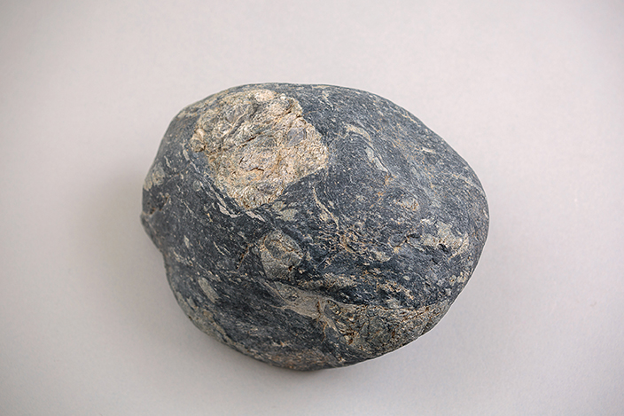 刀は墓坑(ぼこう)に入れられていたが、人骨はいくら探しても見当たらず、かわりに神威岬の石(写真)とクジラの骨、土器の底があった。これはオホーツク文化の墓では初めての事例で、元から遺体がなかった可能性もあるという