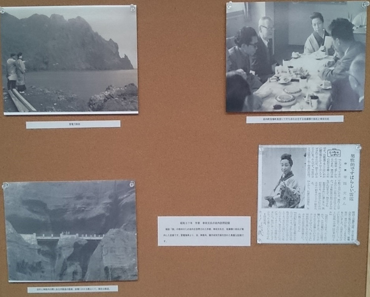 後志旅行時の写真(岩内町郷土館蔵):左側2枚が雷電海岸と作者。右上は岩内町役場での懇親会