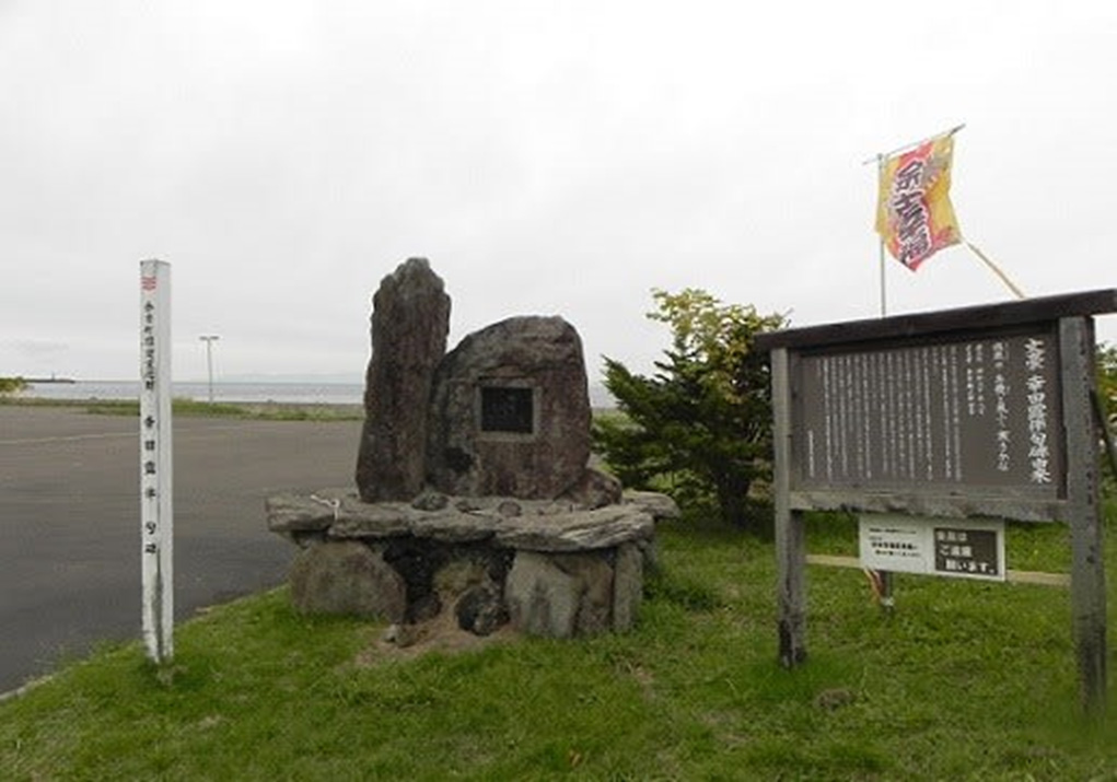 余市町にある幸田露伴の句碑:「塩鮭のあ幾と風吹く寒さかな」